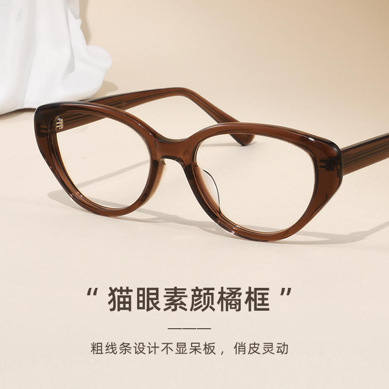 若云眼镜框女2023新款猫眼黑框可配度数近视防蓝光素颜镜架女3096