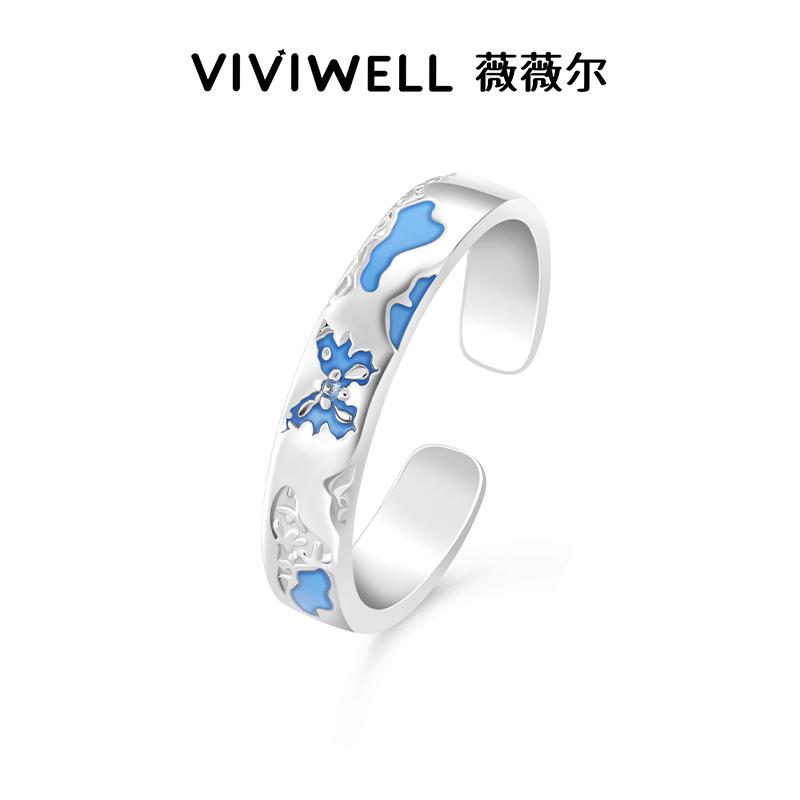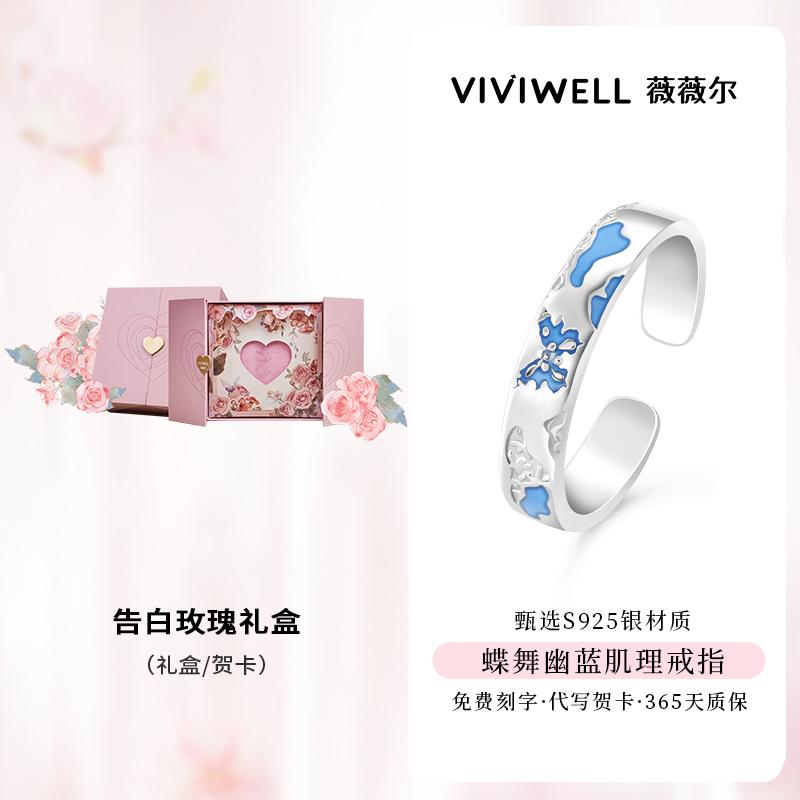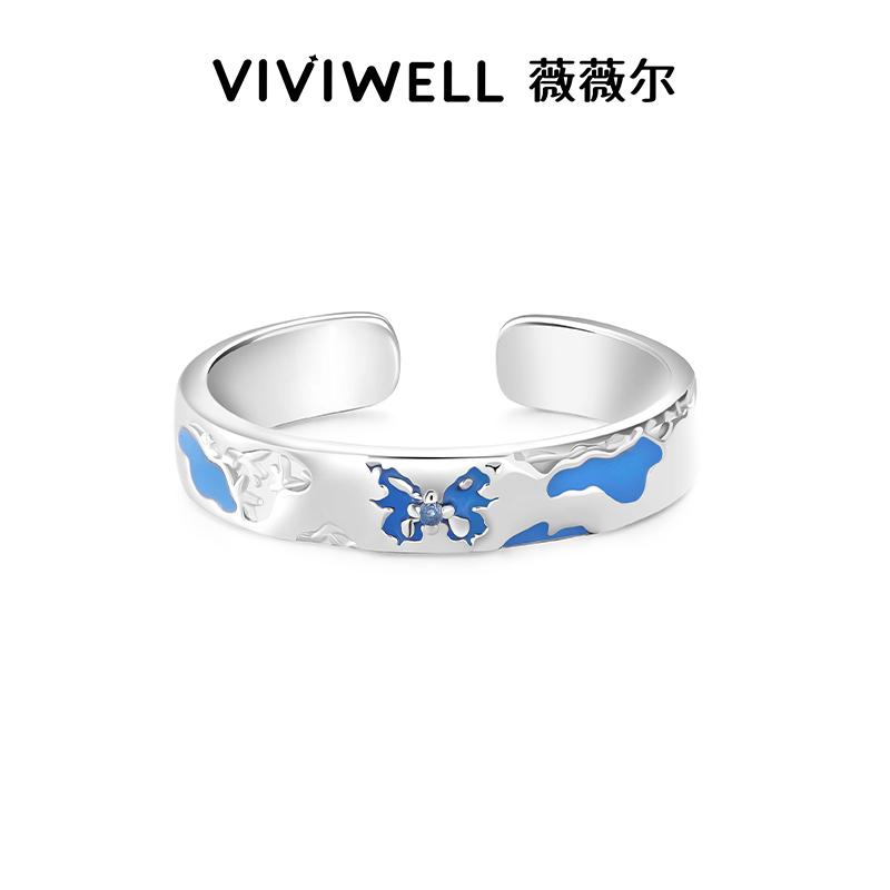 VIVIWELL蝶舞幽蓝 不规则肌理纯银戒指男女同款轻奢夜光蝴蝶指环