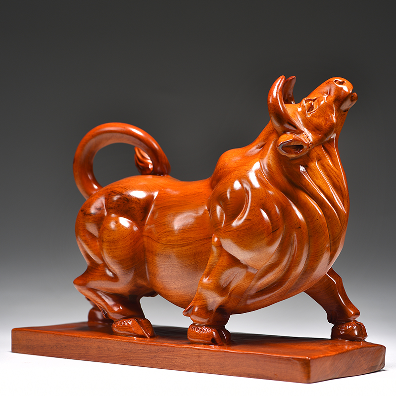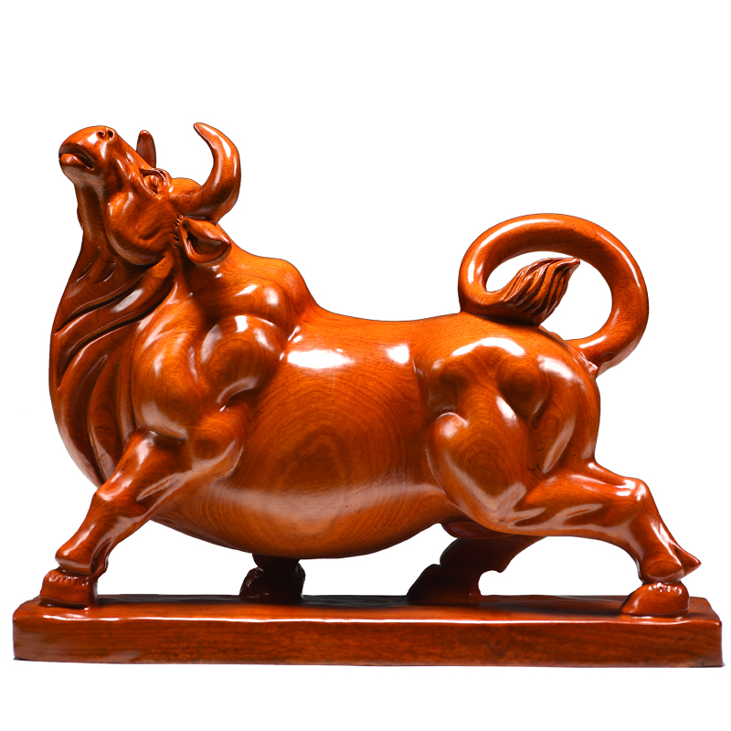 花梨木雕牛摆件纯木雕刻牛气冲天办公室桌面客厅家居玄关装饰礼品