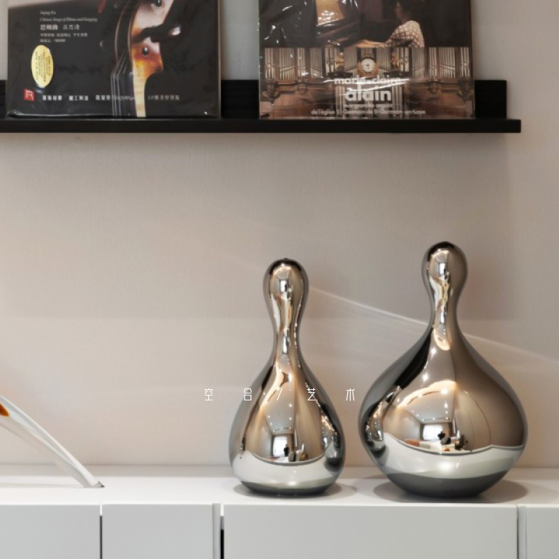空合 现代极简轻奢保龄球形玻璃摆件 样板间售楼部书房客厅装饰品