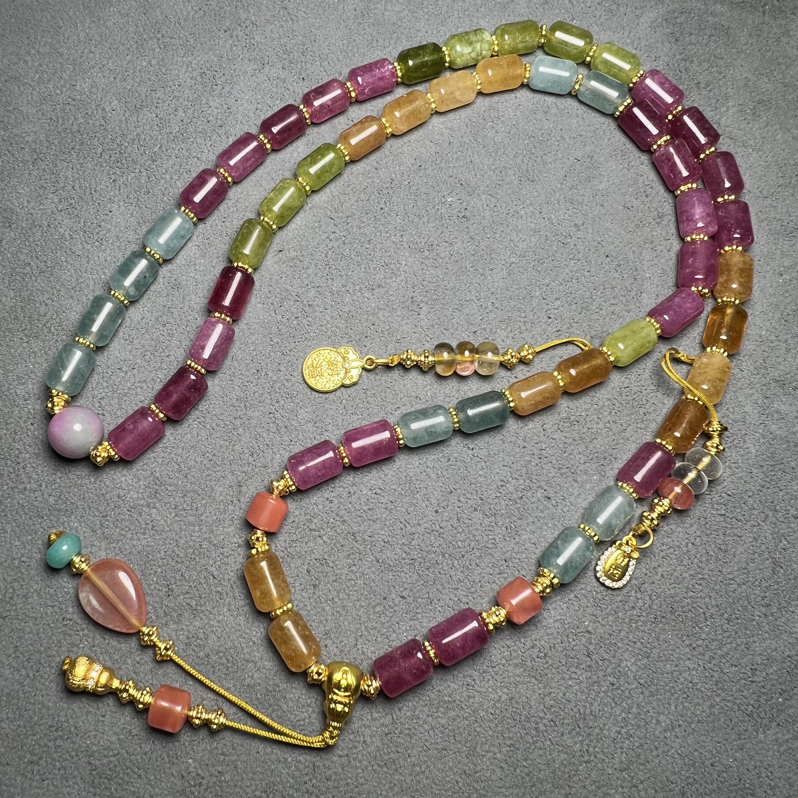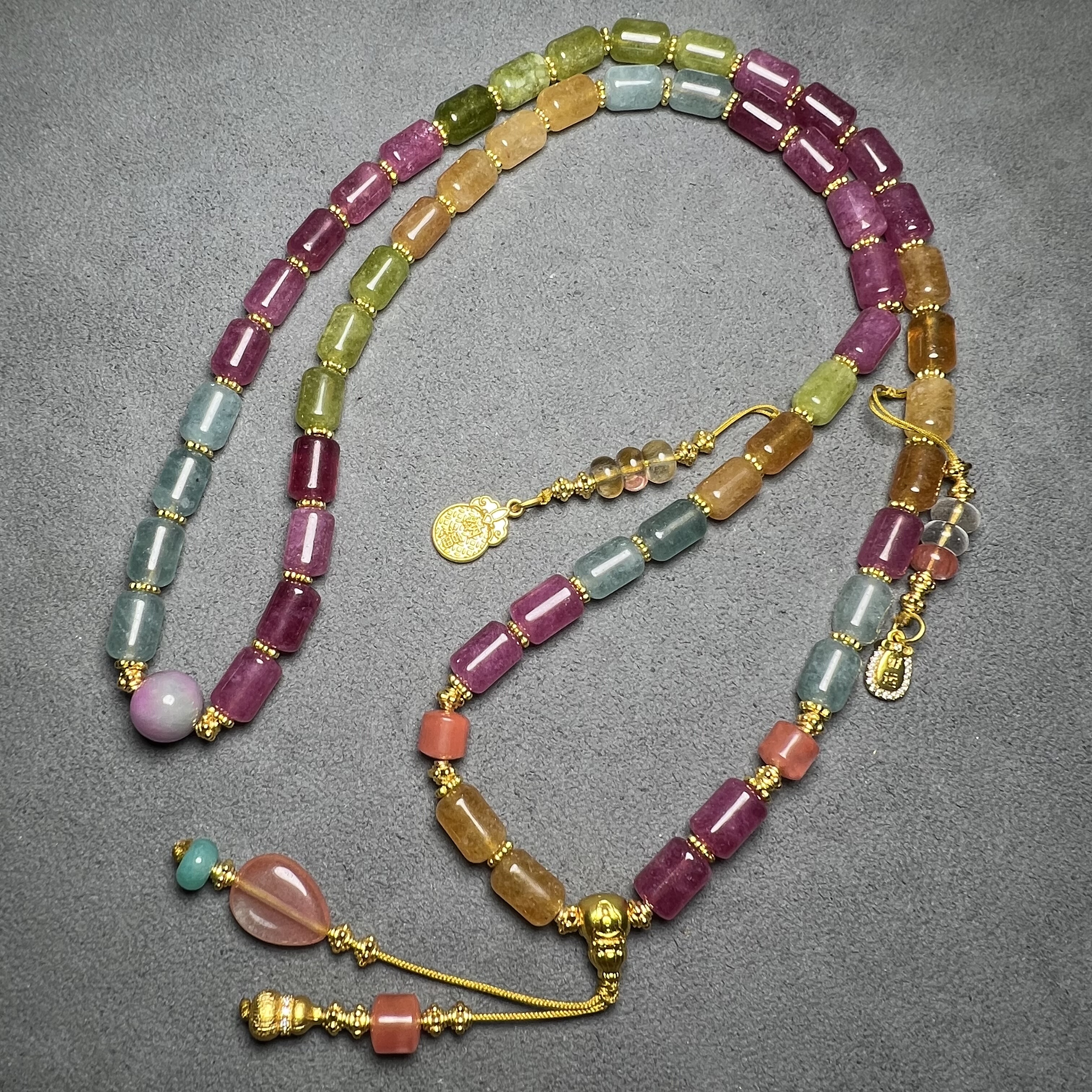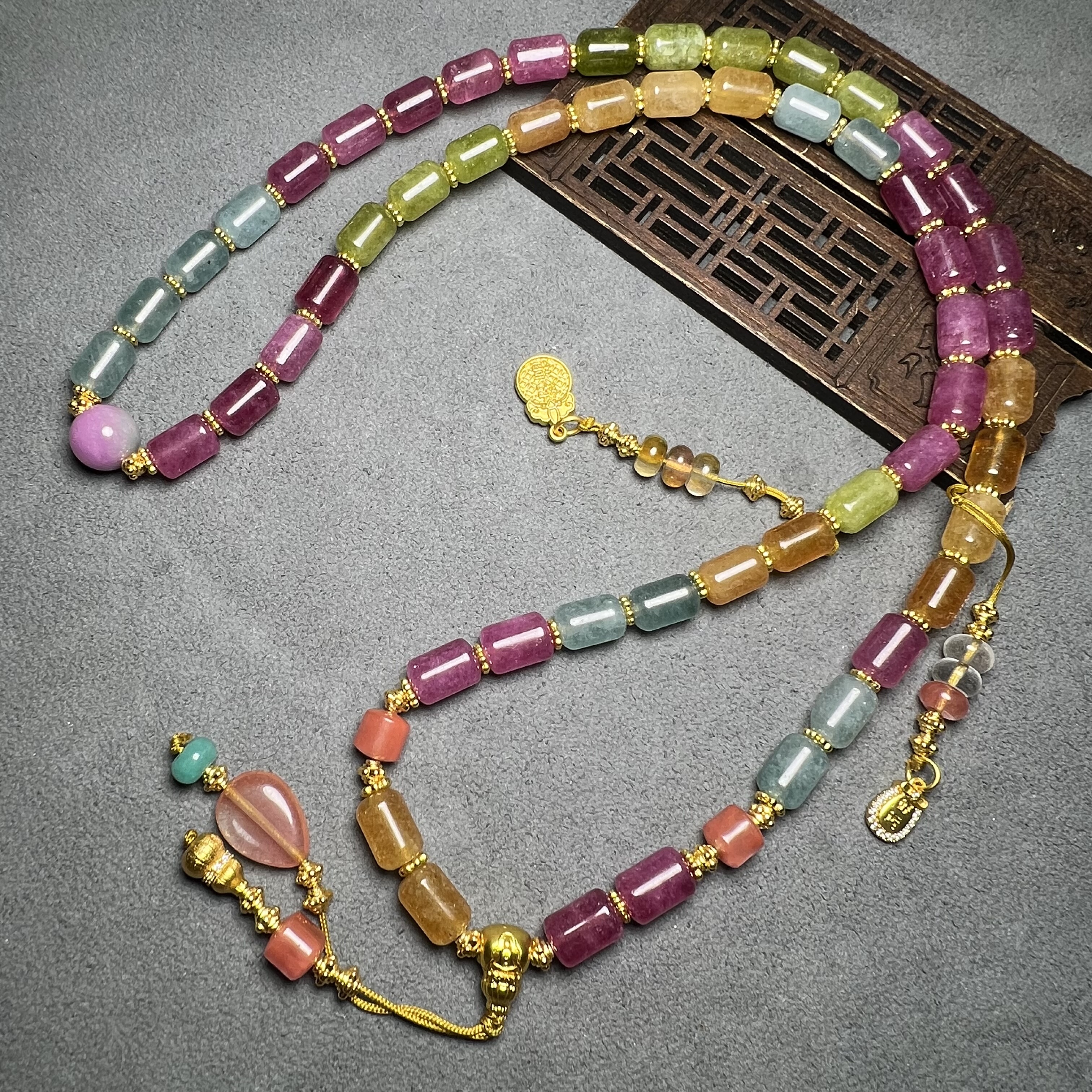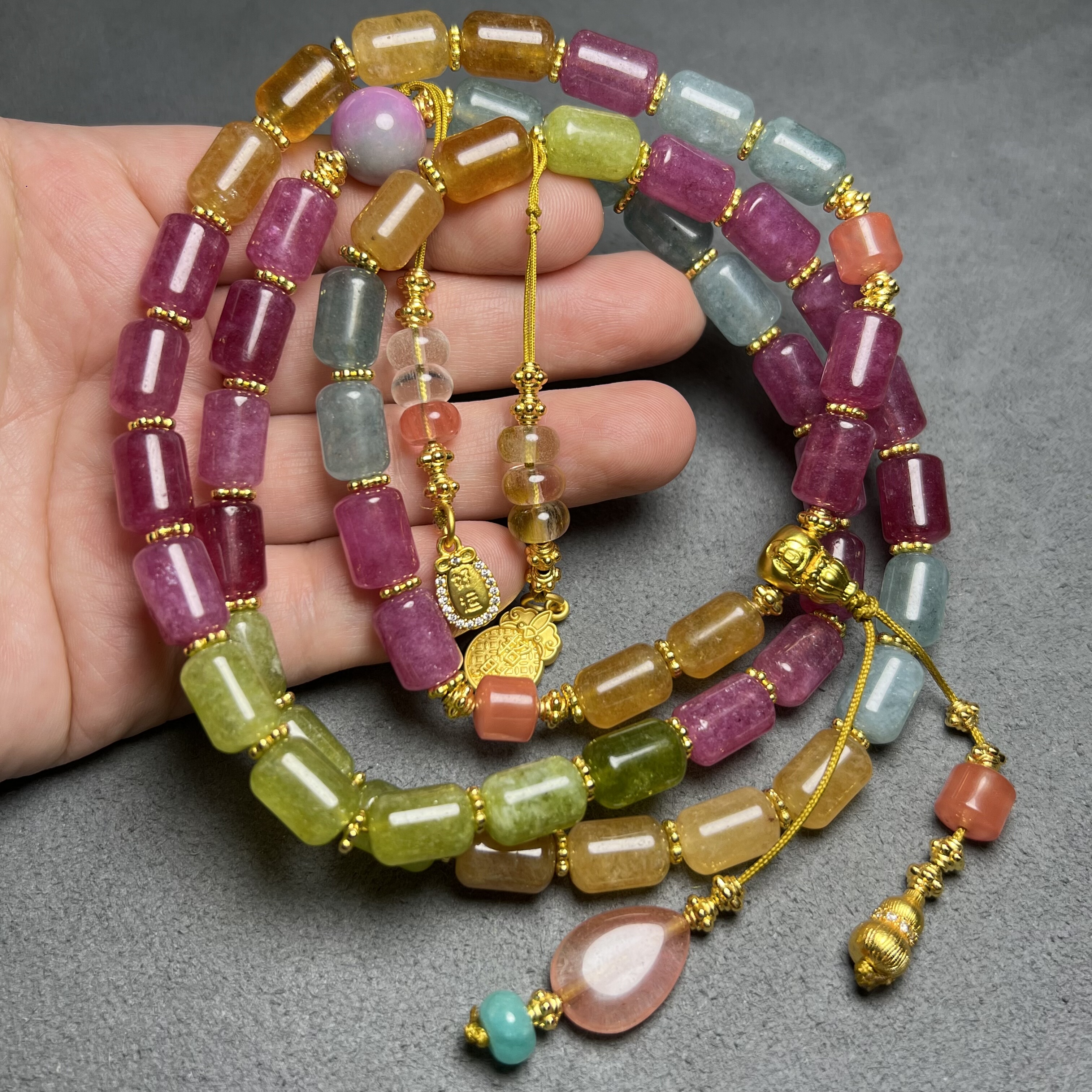 古玩巴西水晶冰种小清新纯糖果色彩红碧玺色水晶桶珠多宝项链手链