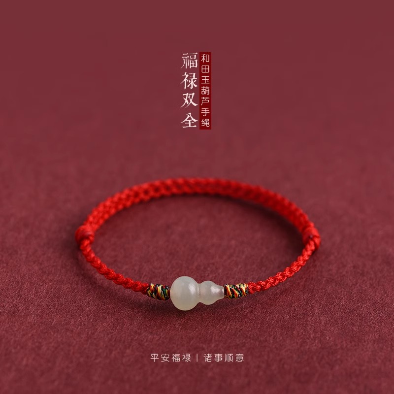2026新款福禄天然和田玉葫芦红绳手链脚链男女本命年平安好运手绳