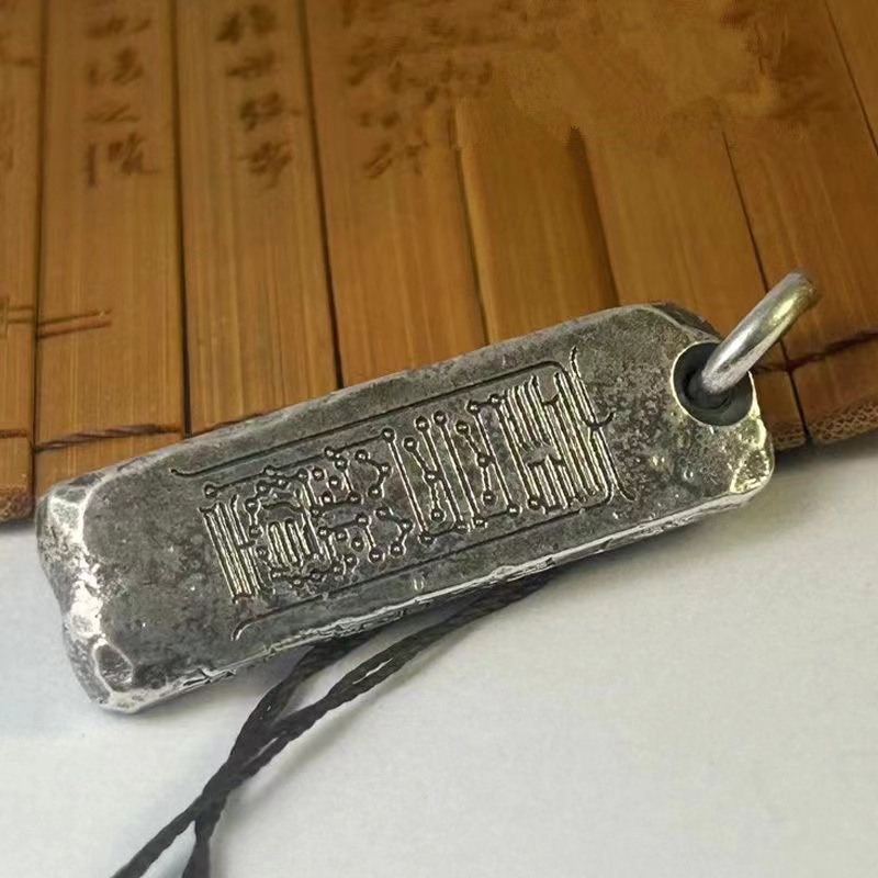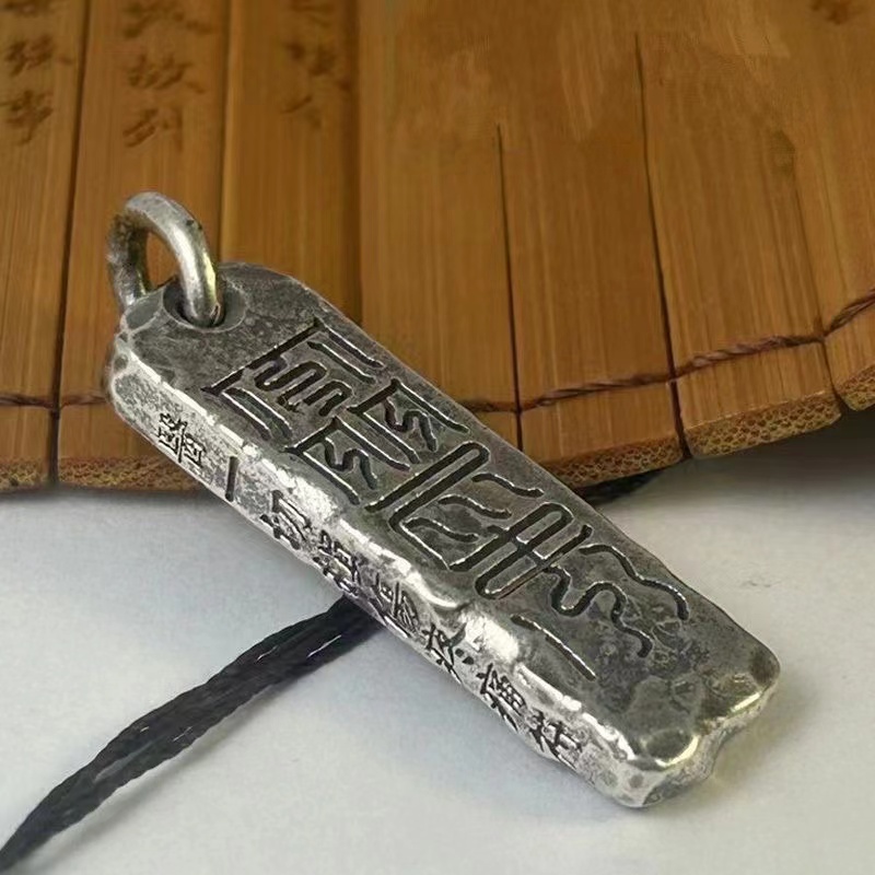 锤纹刻字999足银道家云篆天书饰品纯护身符吊坠手机挂坠