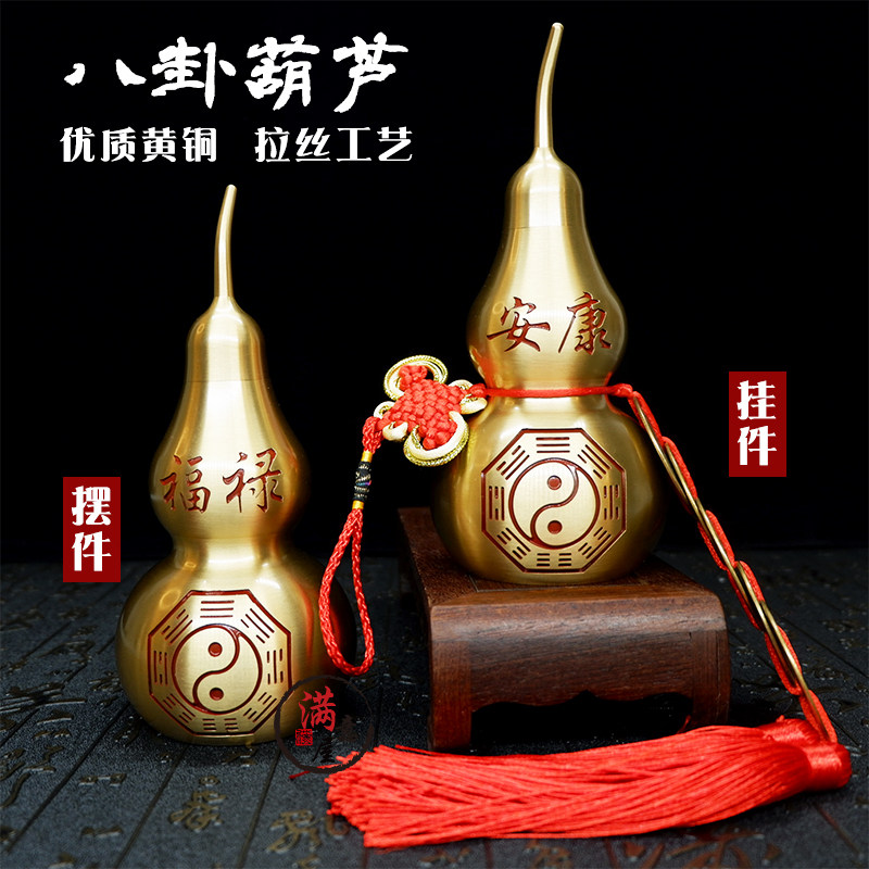 纯铜开口葫芦摆件汽车挂件五帝钱客厅桌面鎮宅招财转运化解门对门
