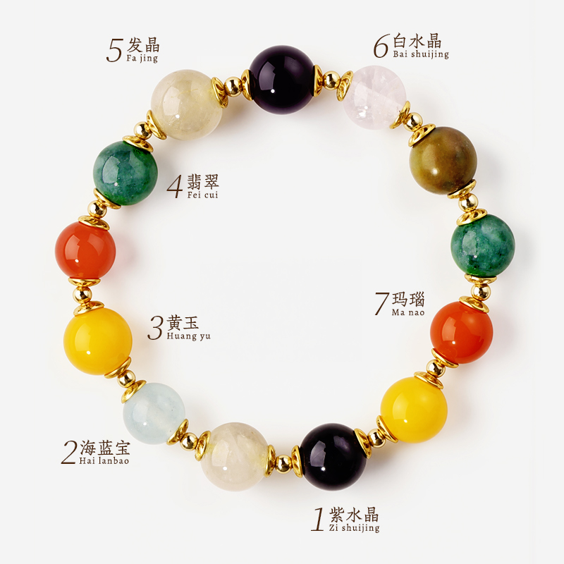 宫中礼天然七彩多宝玛瑙手白链紫水晶多福古法金配件男女通用手串