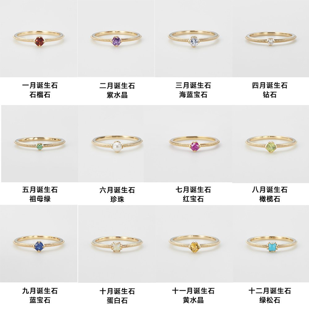日潮跑腿agete阿卡朵10k金1-12月诞生石宝石戒指妈妈戒生日礼物