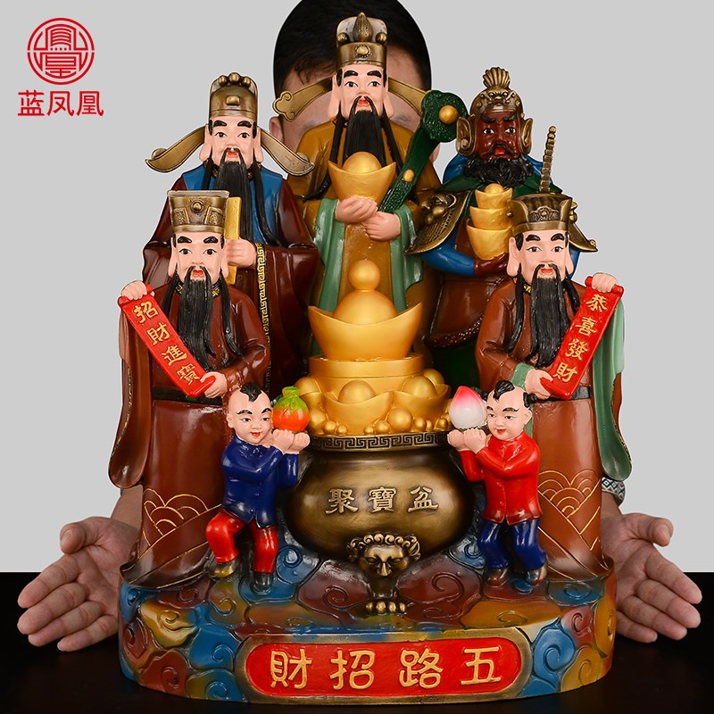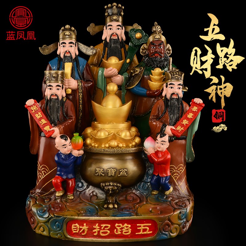 速发五路财供摆件黄铜財神像佛爷家用五路招神奉客厅公司办公室大