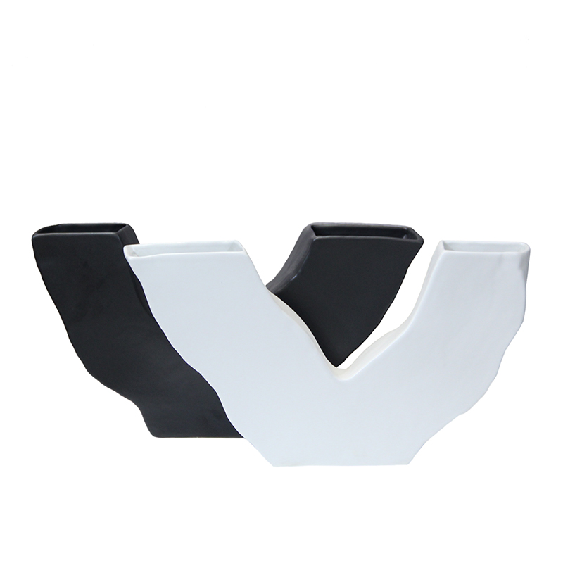 当前位置:首页>商品详情>现代极简轻奢黑白色V字形u花插饰品摆件北欧简约客厅陶瓷干花花瓶
