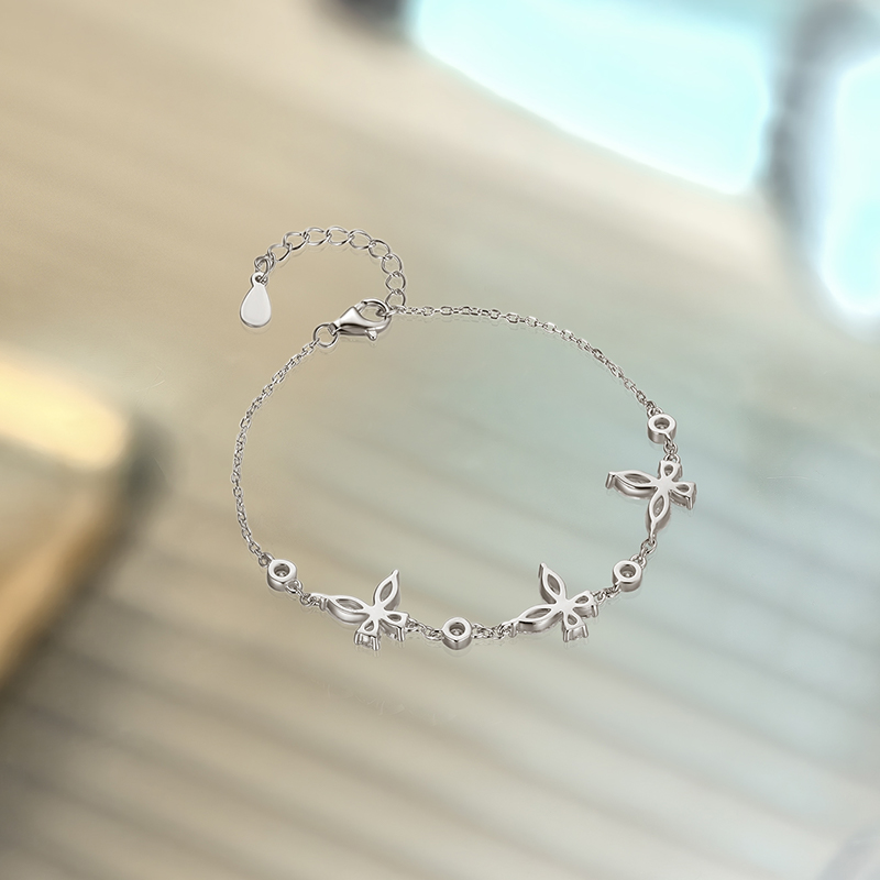 周六福S925银手链女蝴蝶结手饰高级感小众百搭520送女友礼物