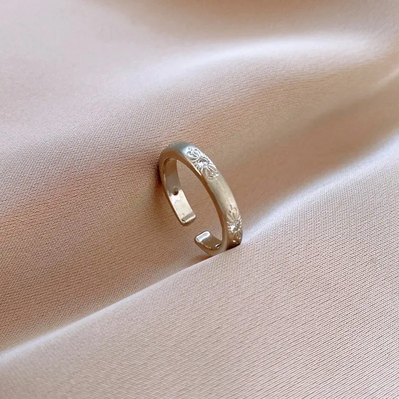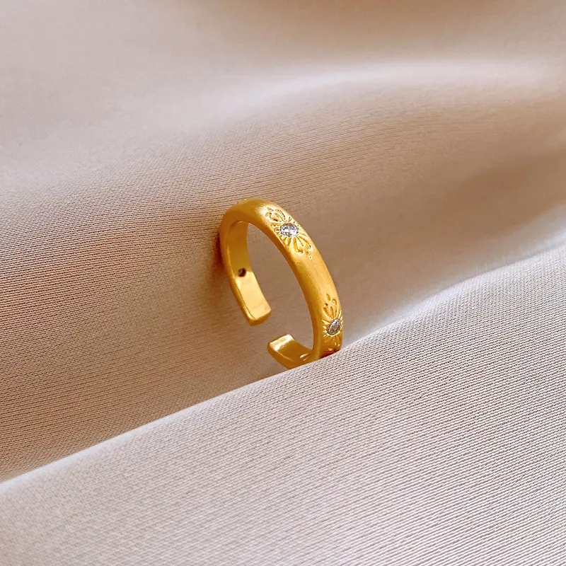 新中式锆石花纹素圈开口戒指轻奢高级感指环食指戒简约时尚手饰女