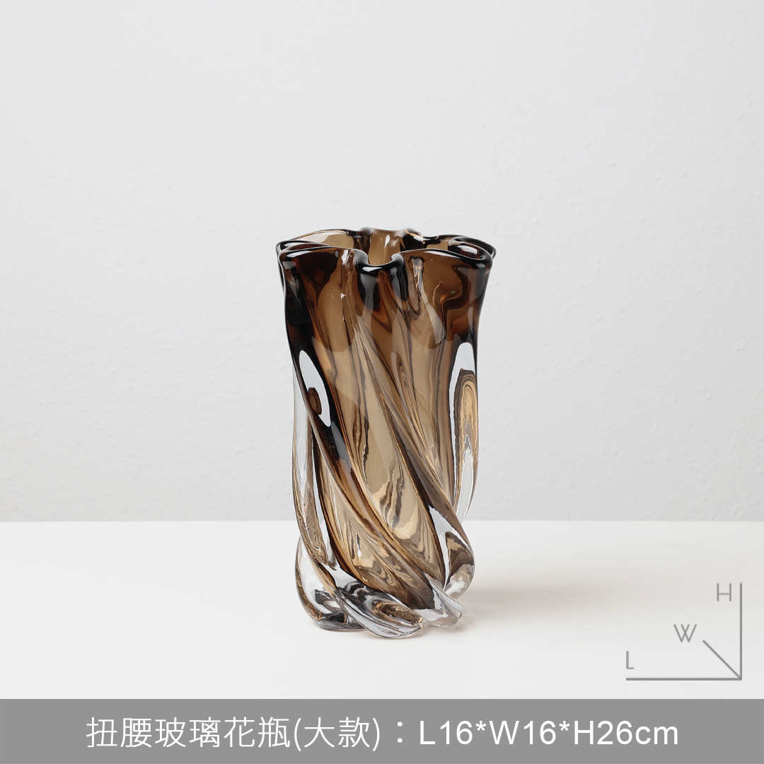 咖感高级奢现代玄关玻璃摆件色样板间花瓶摆件客厅花创意水培器轻