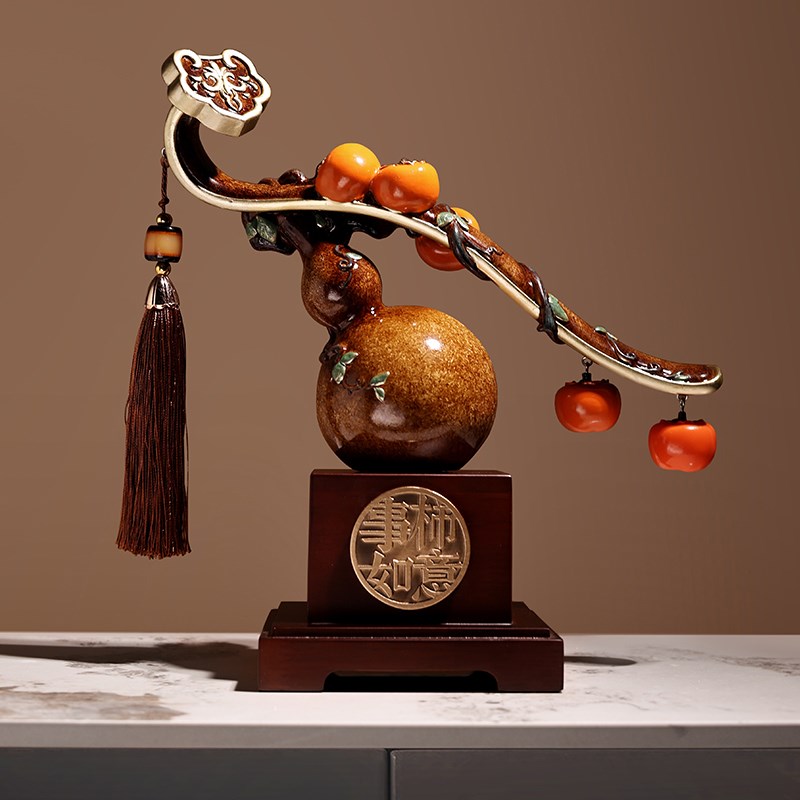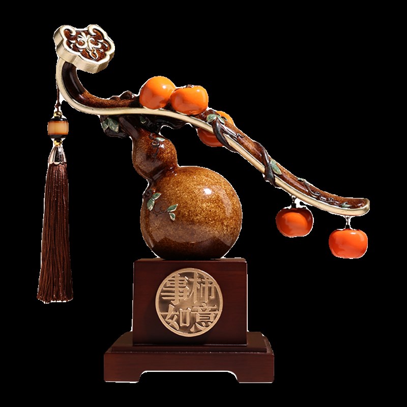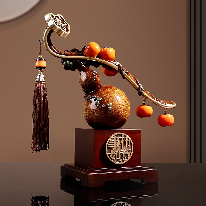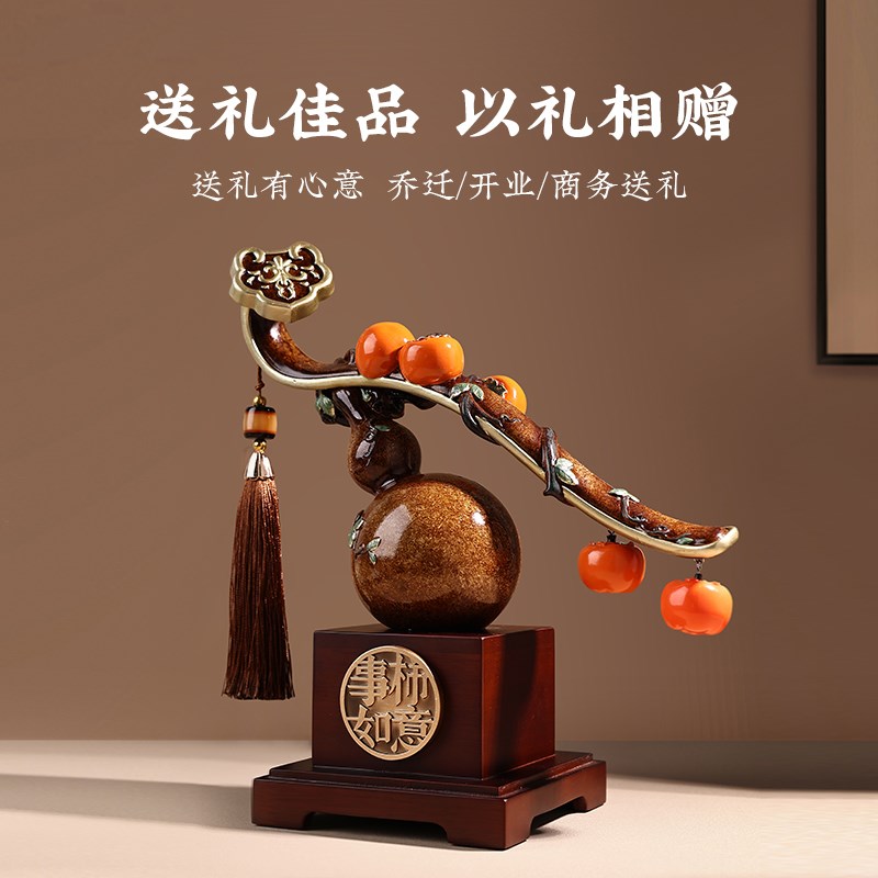 高档葫芦摆件事事如意柿子装饰品客厅酒柜办公室搬家乔迁新居礼品