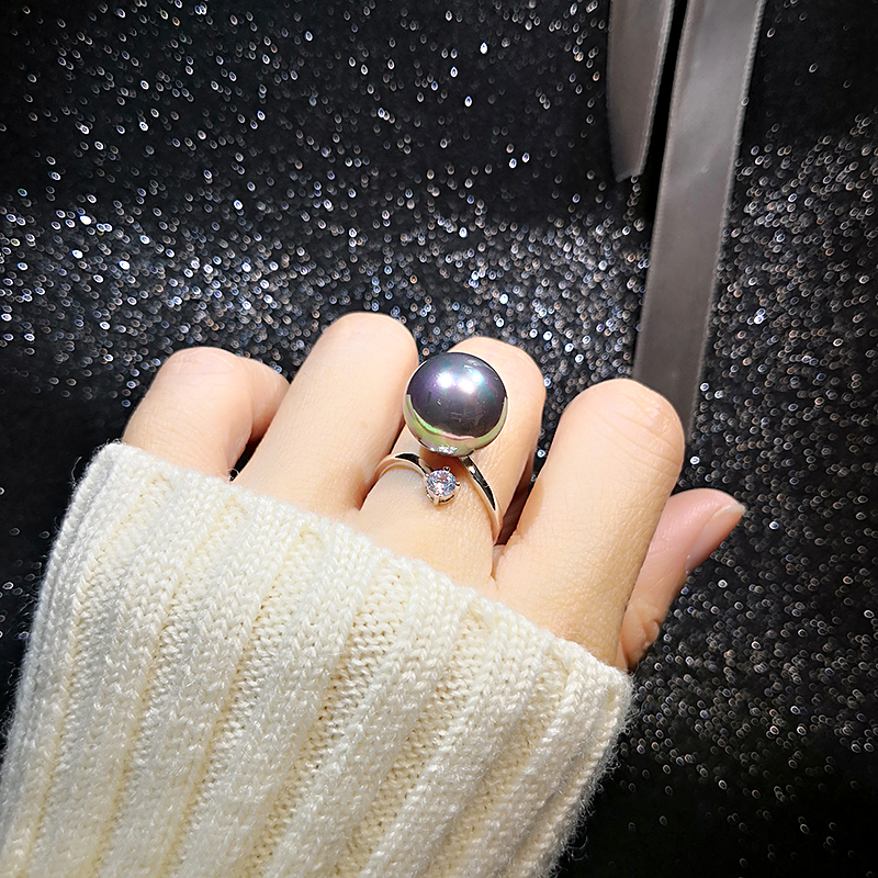 日韩食指夸张简约指环个性u学生潮人奢华可调节开口珍珠气质女戒