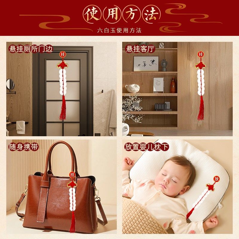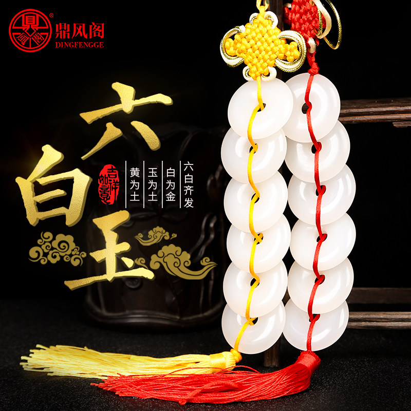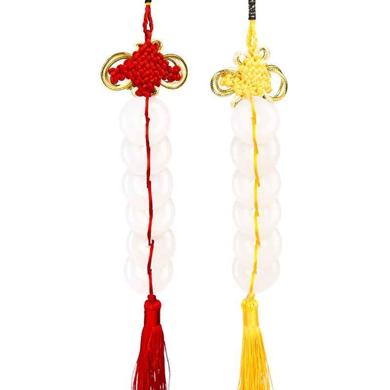 天然汉白玉平安扣六白玉串挂件压惊厕所对门冲门卧室卫生间挂饰