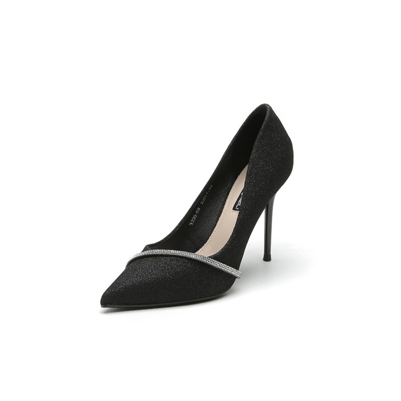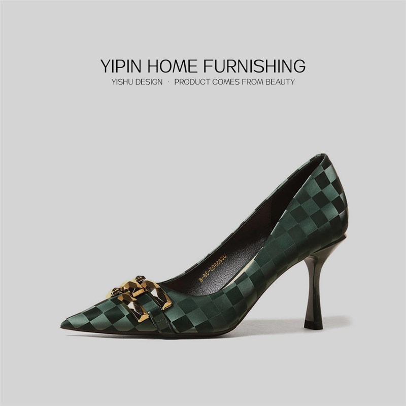 样板房间衣帽间女鞋高跟尖头细跟深色系黑色墨绿黑白凉拖鞋气质