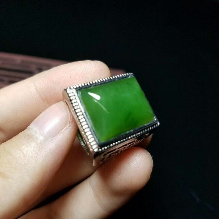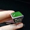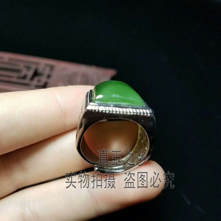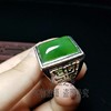 天然新疆和田玉碧玉戒指925银镶嵌菠菜绿碧玉扳指男款霸气玉指环