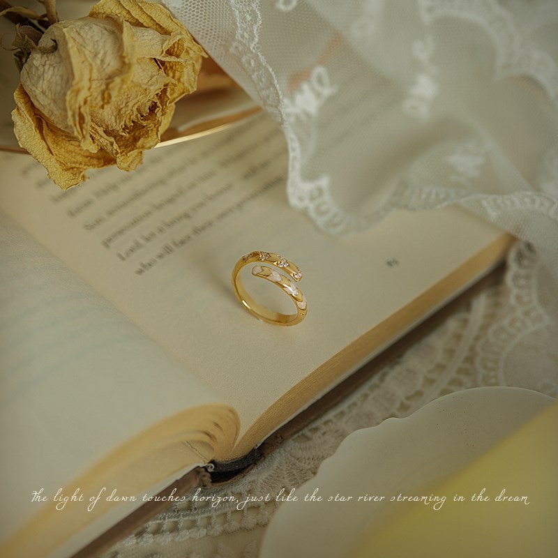 锆石滴釉开口戒指女设计感小众气质食指戒复古可调节纹路线条指环