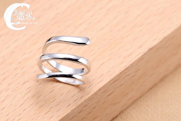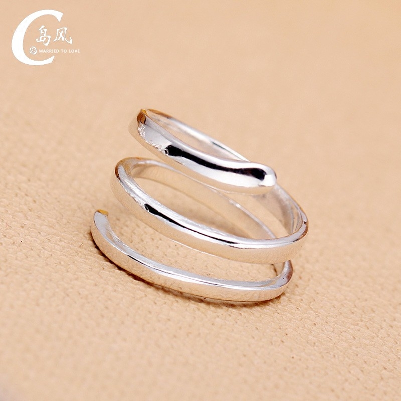 999纯银戒指光面三环蛇99足银戒女男情侣简约个性日韩会变黑真银