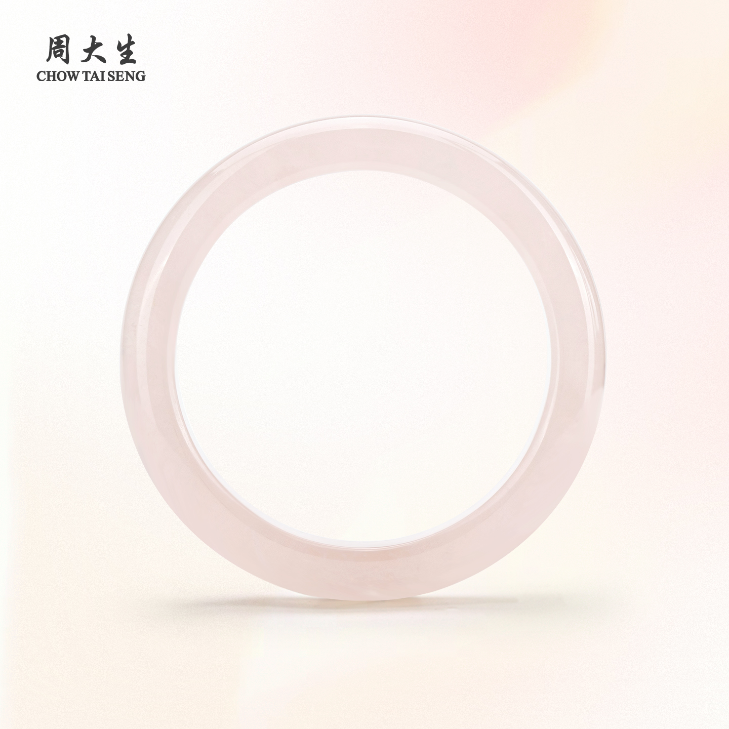周大生官方粉水晶手镯女款玉石冰透纯天然玉镯正品送女友生日礼物