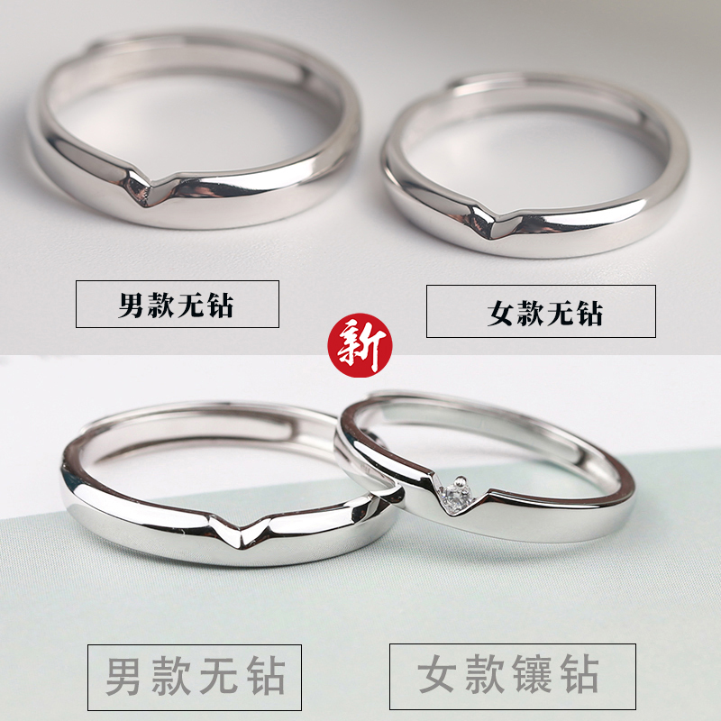 Princess原创新款爱上心头情侣戒指一对S925纯银镶钻情侣对戒活口
