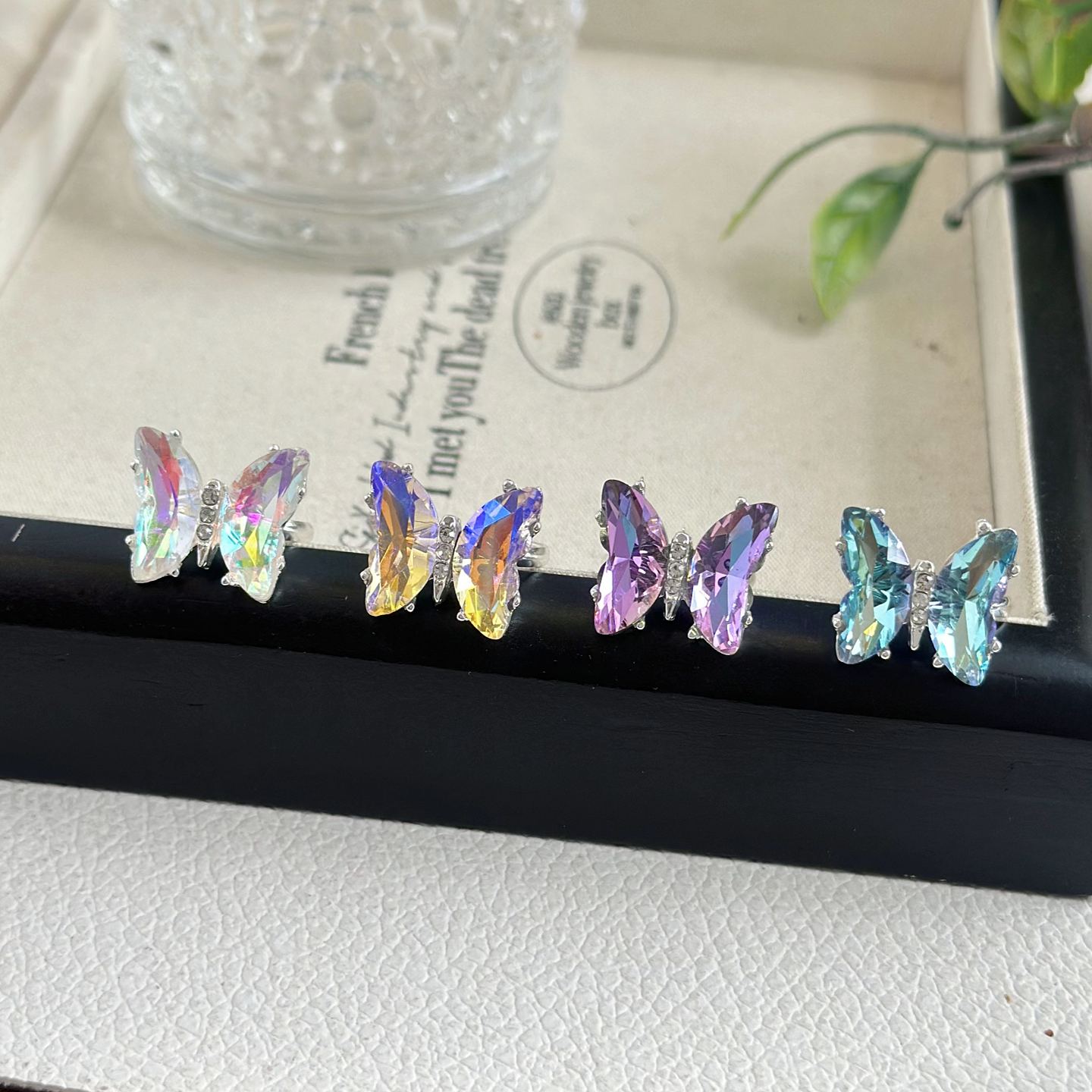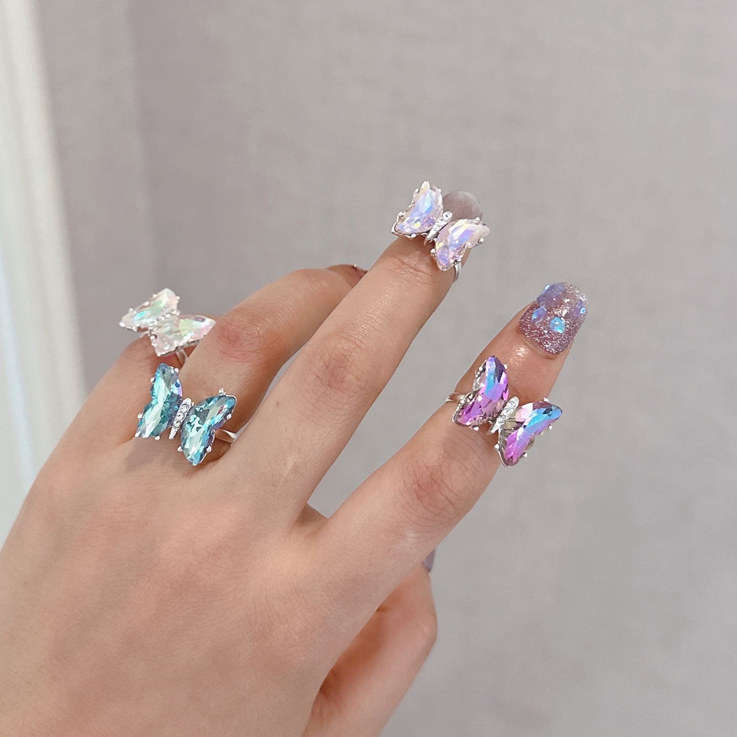 儿童立体蝴蝶戒指小众设计小女孩渐变彩色水晶指环首饰品宝宝礼物