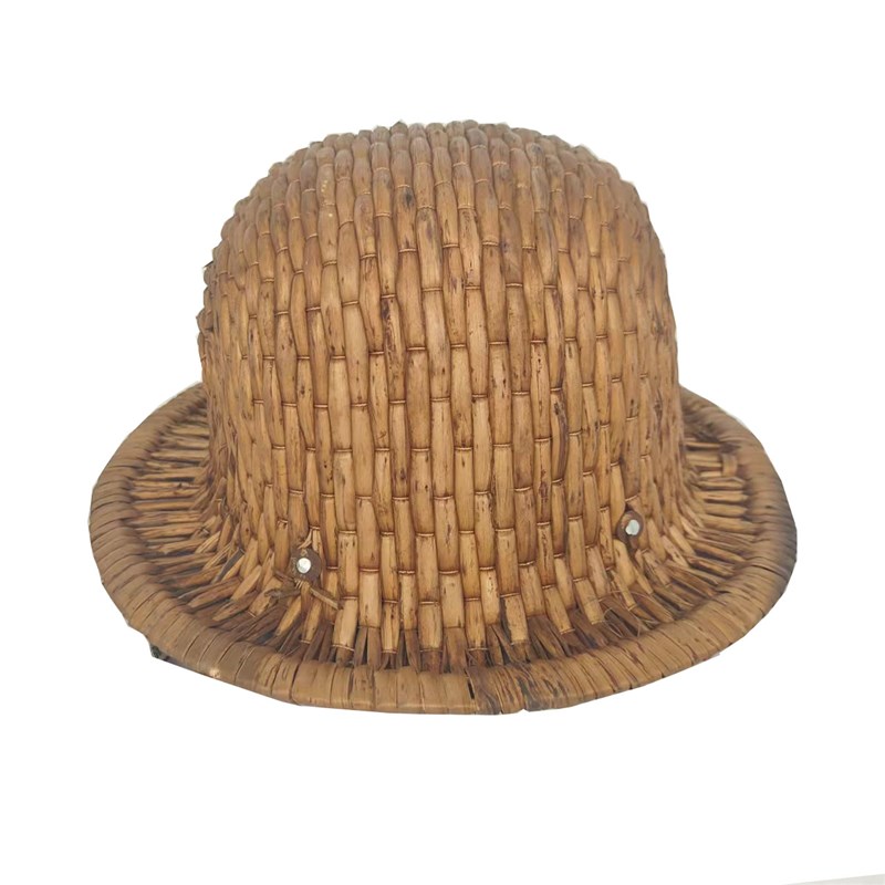 老物件旧斗笠5j0年代矿工工人安全帽竹编帽矿灯复古装饰道具摆件
