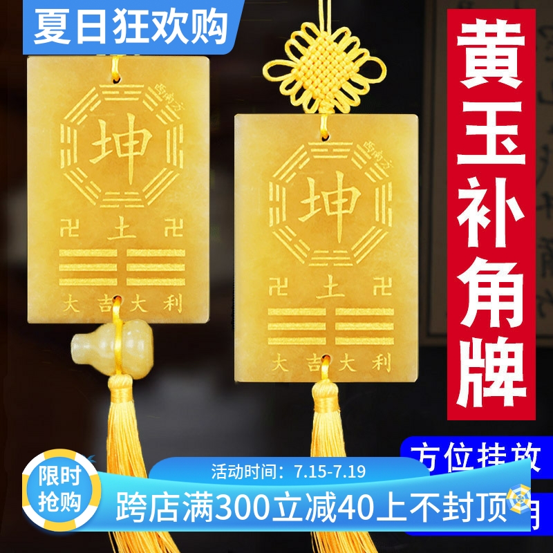 天然黄玉补角牌房屋缺角八卦牌西南坤卦乾兑巽艮坎震离葫芦挂件
