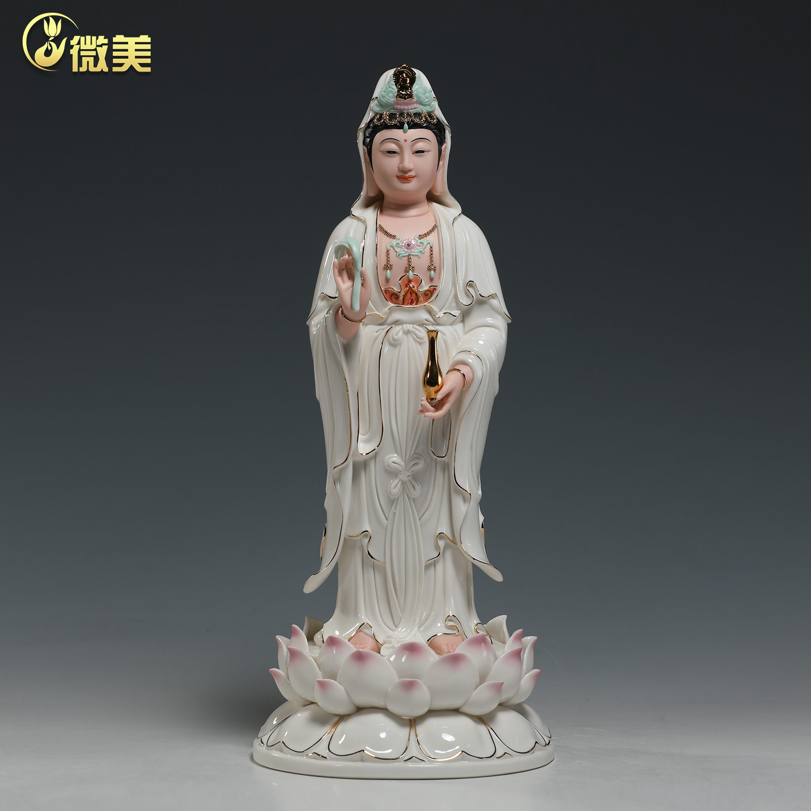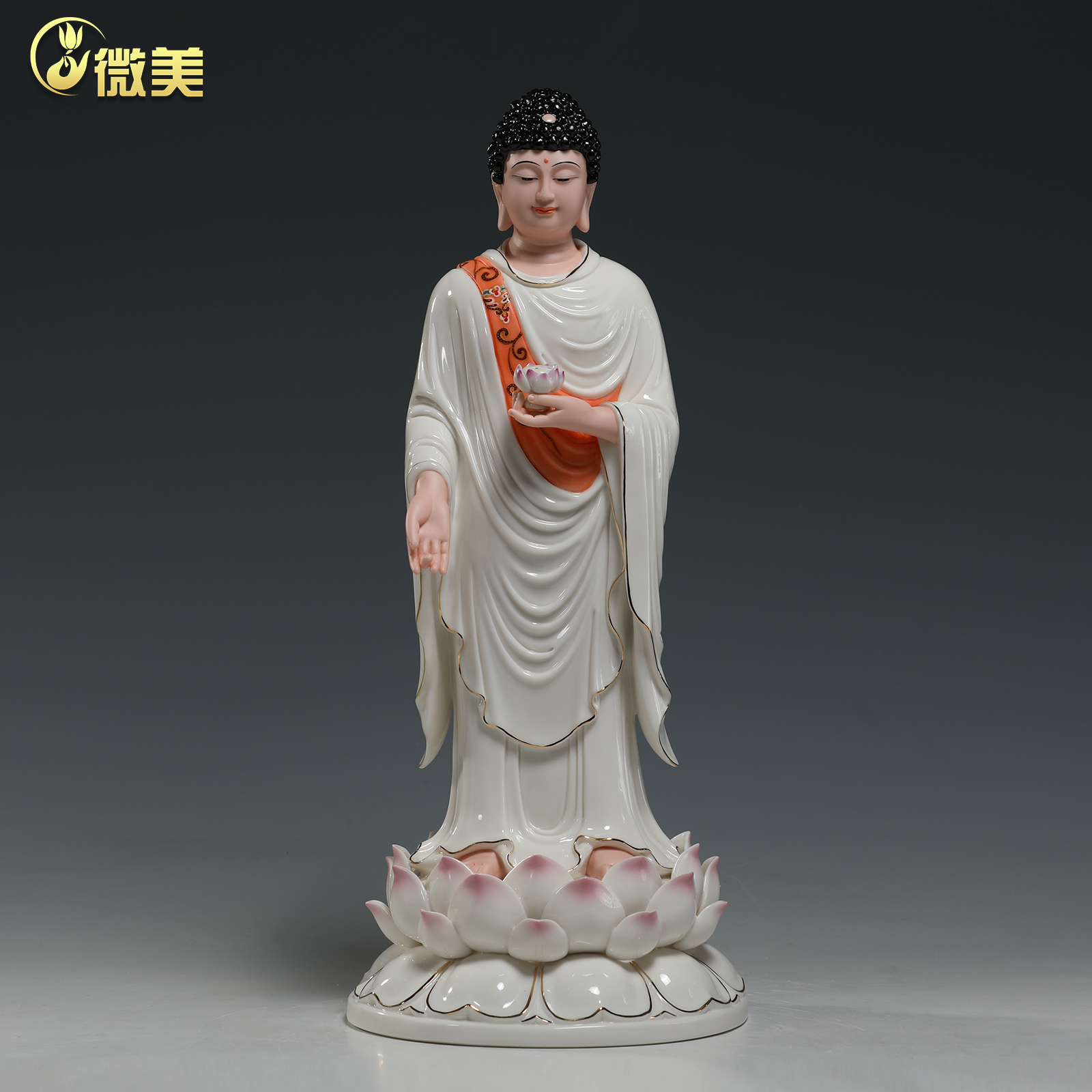 微美陶瓷16寸娑婆三圣佛像摆件观音地藏王释迦牟尼佛站像三圣像