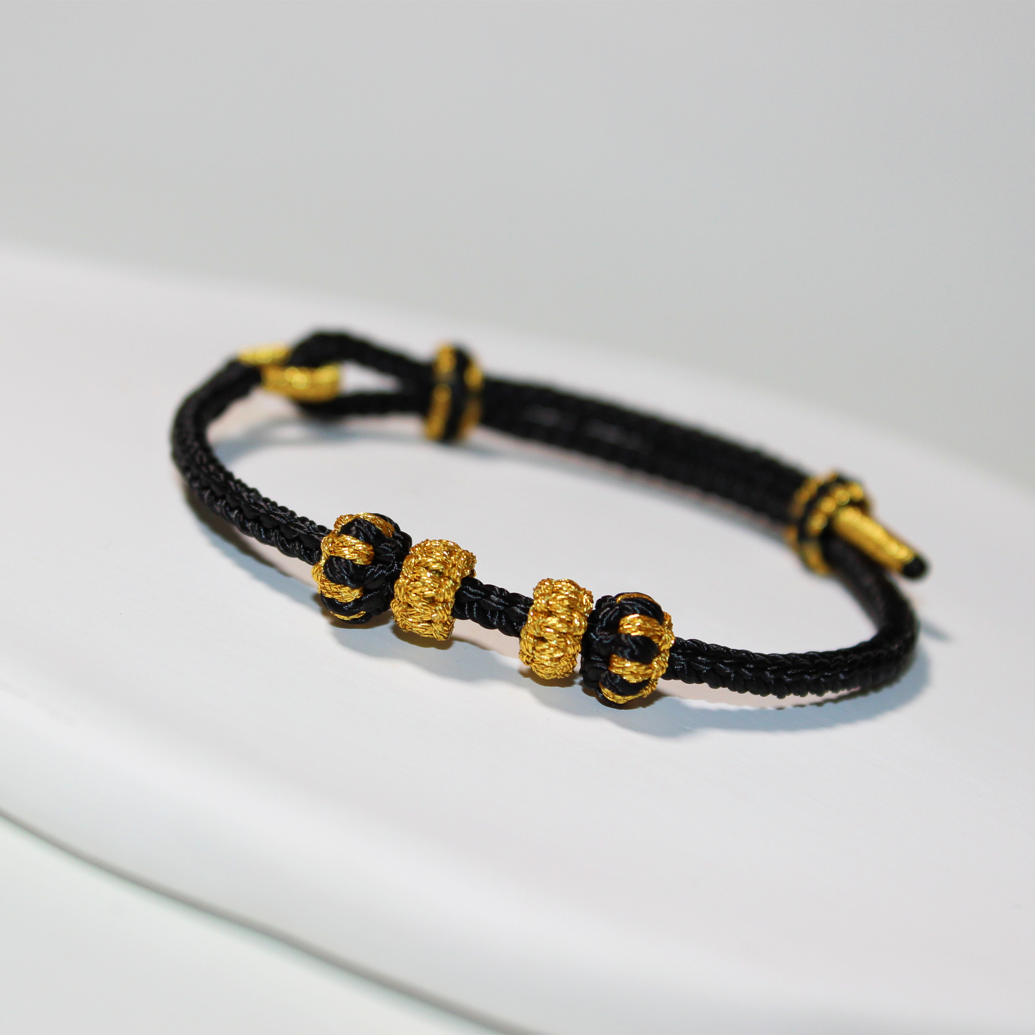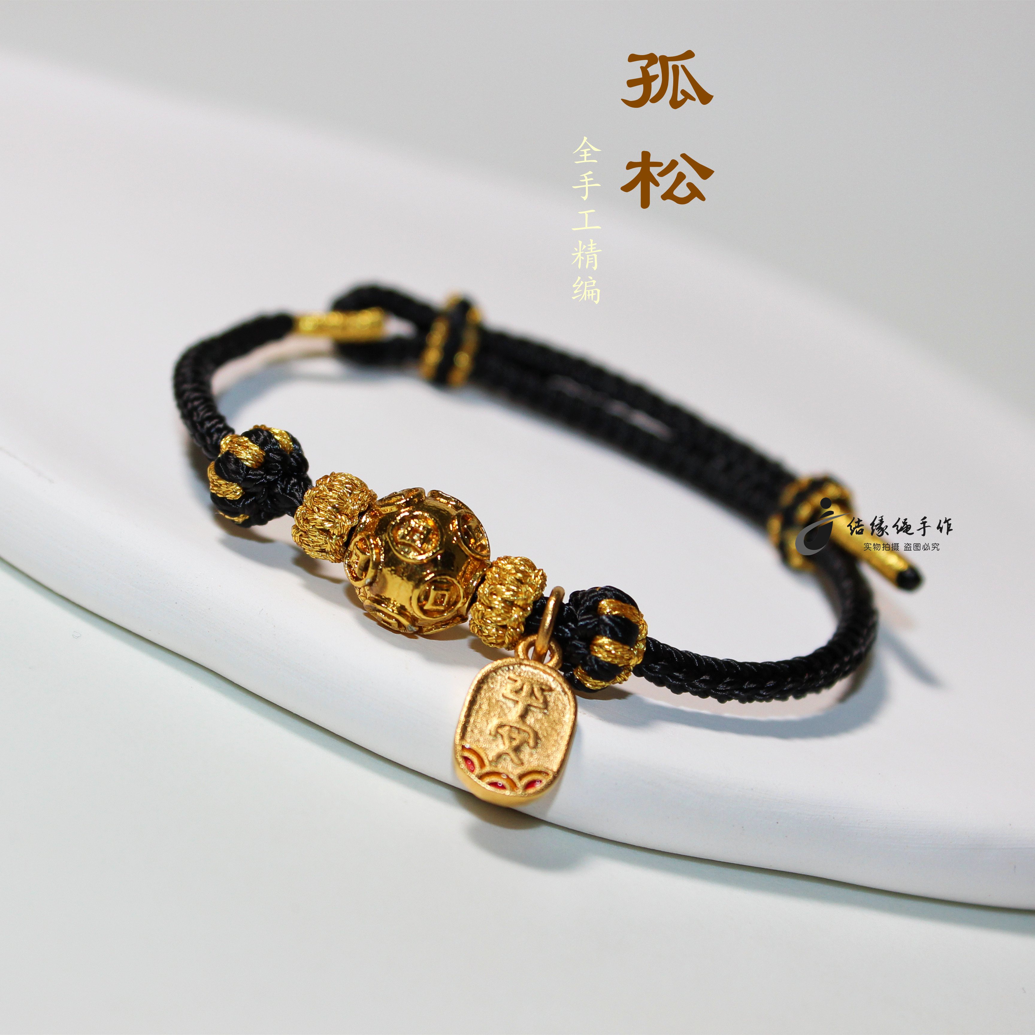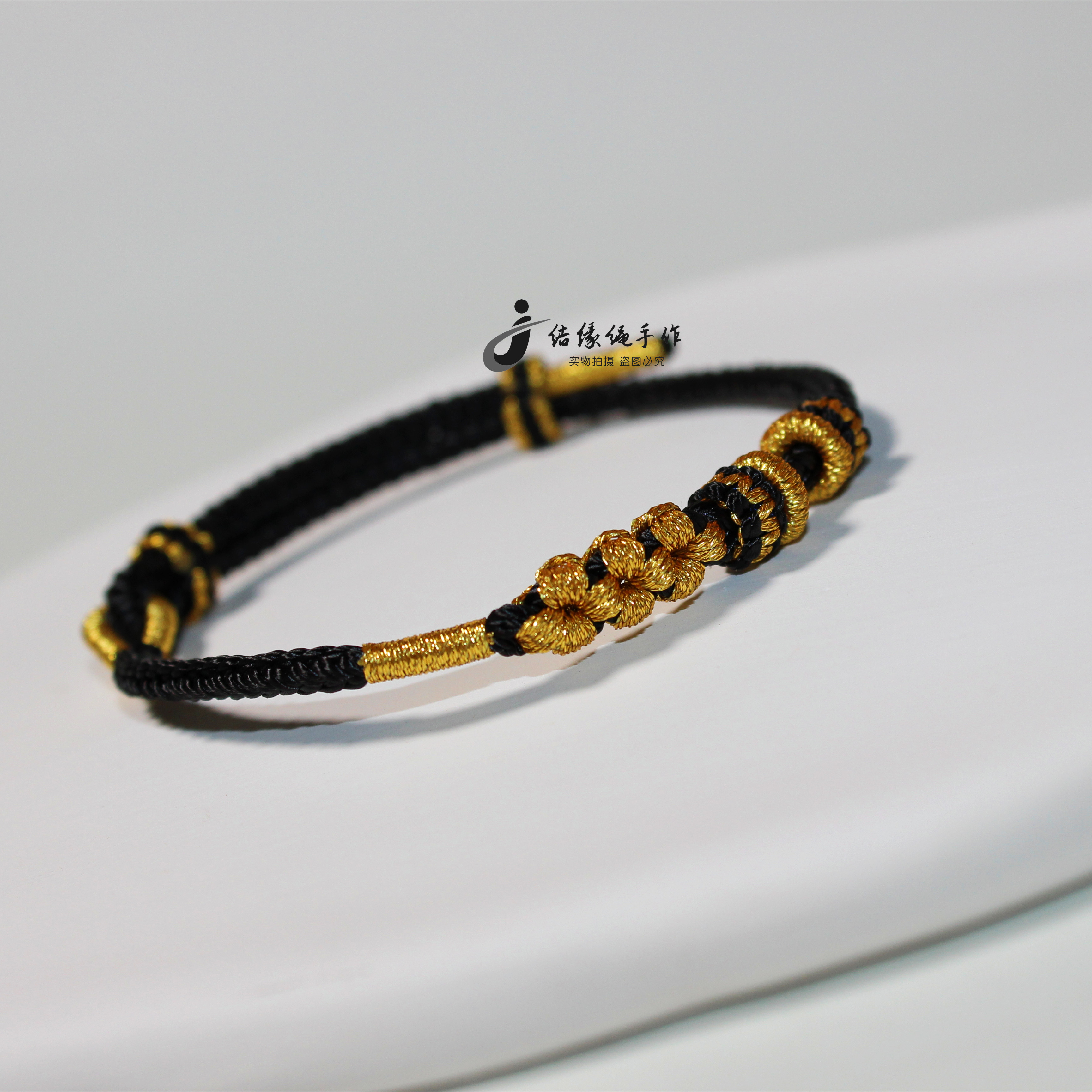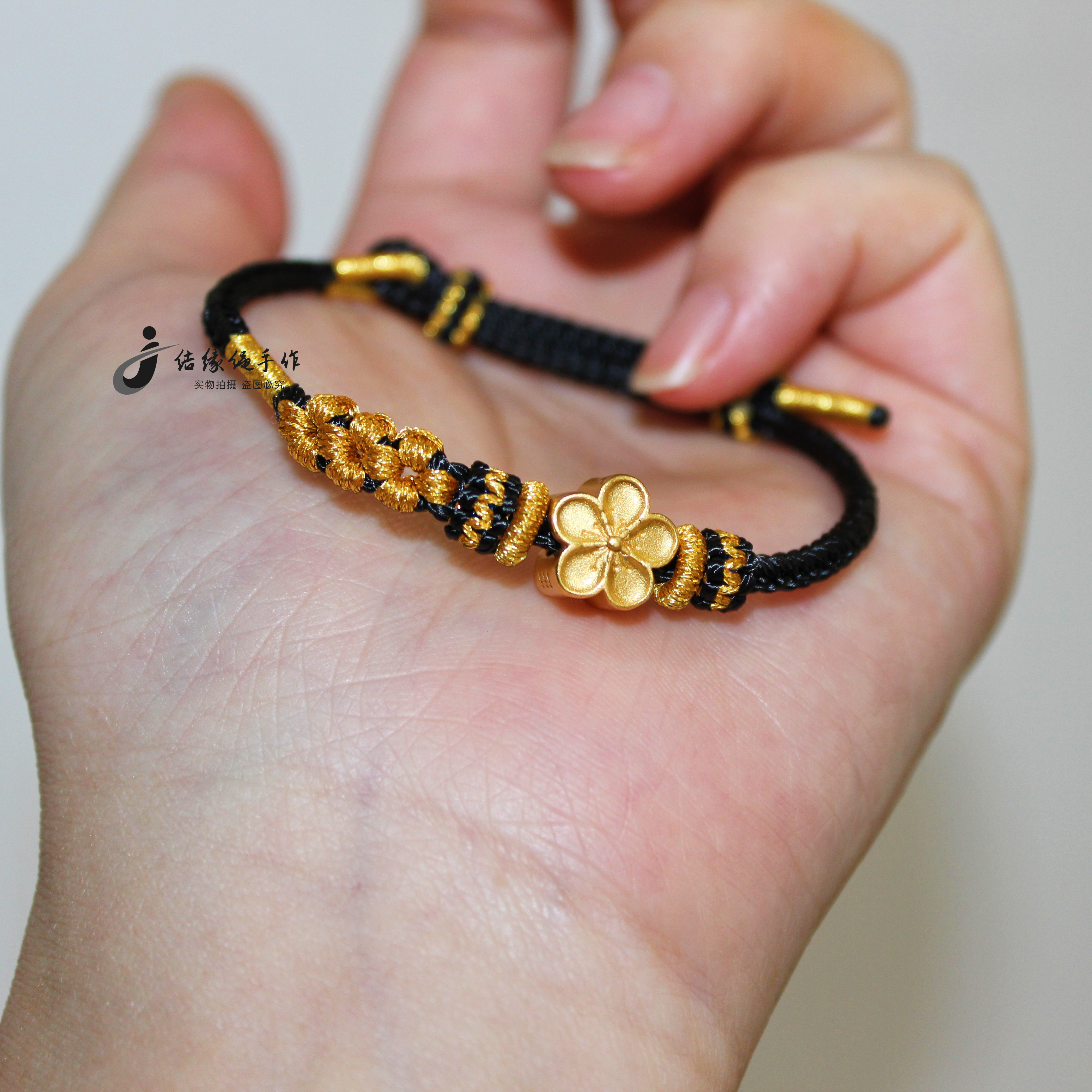 全手工编织金色桃花结手绳可穿3D硬金手链男女情侣礼物编织绳成品