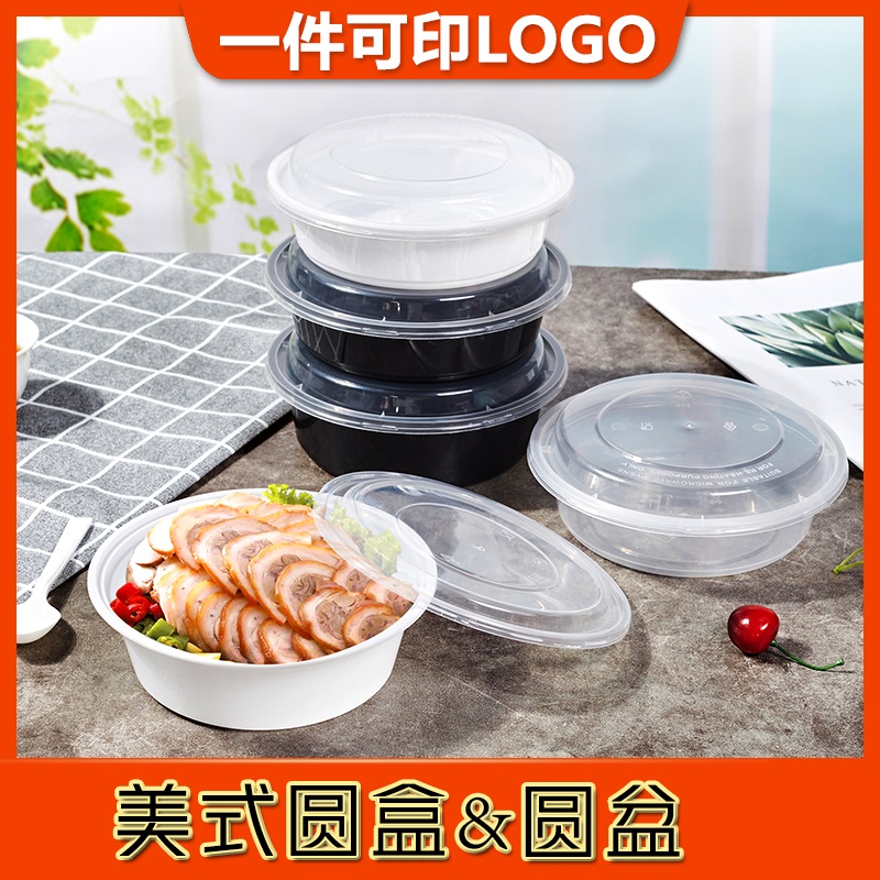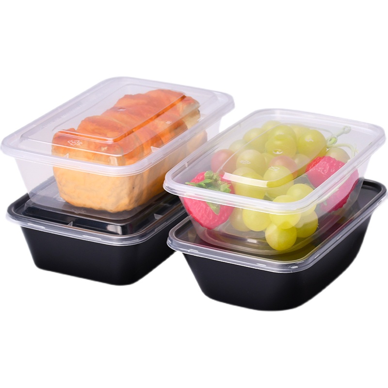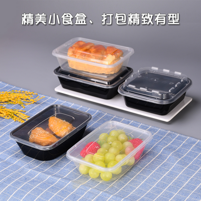 加饭小碗菜小汤碗圆形一次性餐盒长方形塑料打包盒450ml加厚带盖