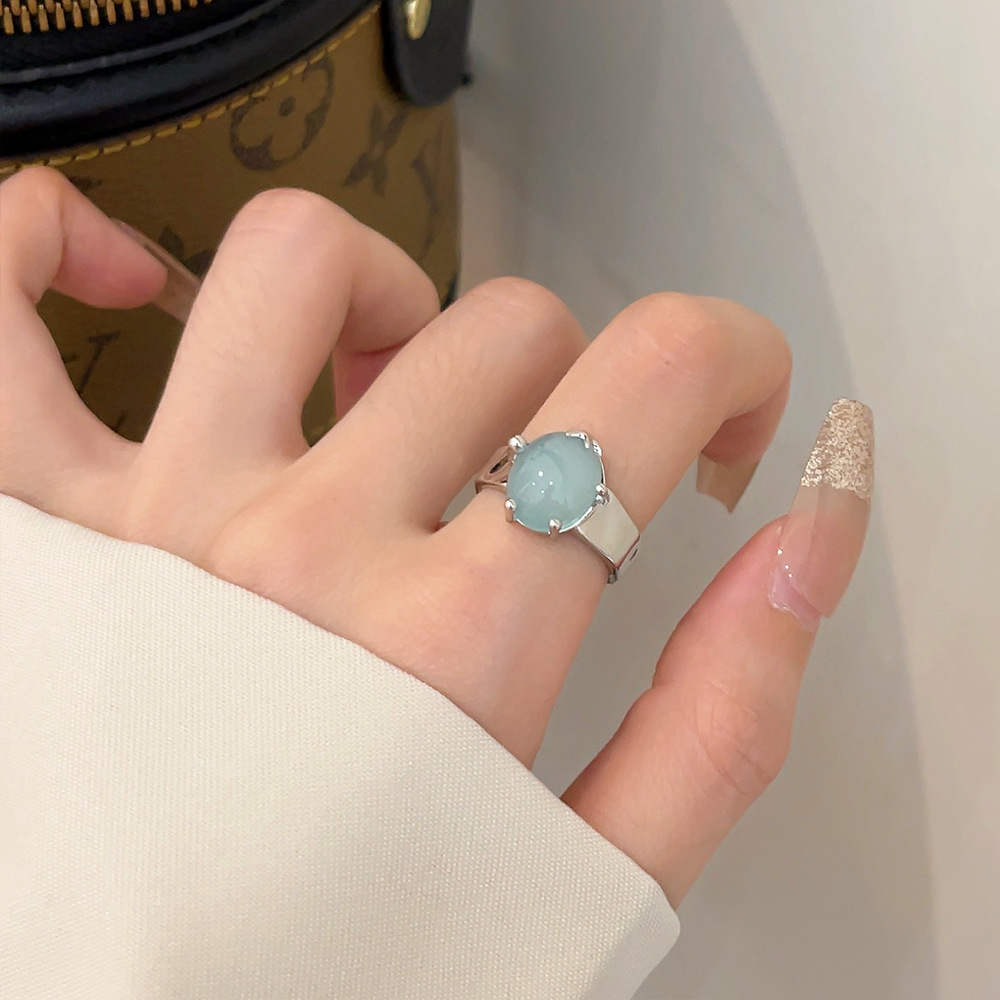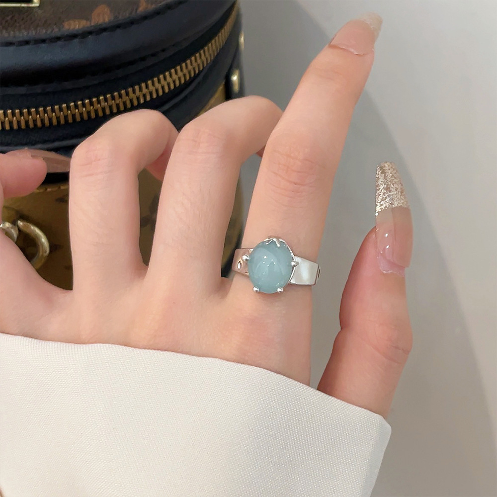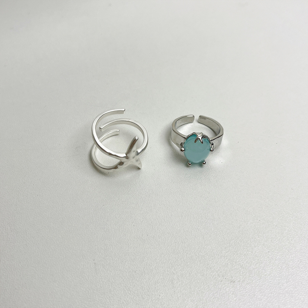 冷淡风海蓝水晶不规则开口戒指女轻奢小众高级感海星指环食指戒潮