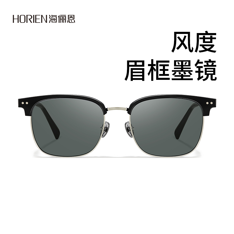 海俪恩墨镜半框男士开车专用眉框偏光金属太阳镜女防紫外线N8555