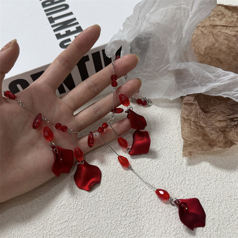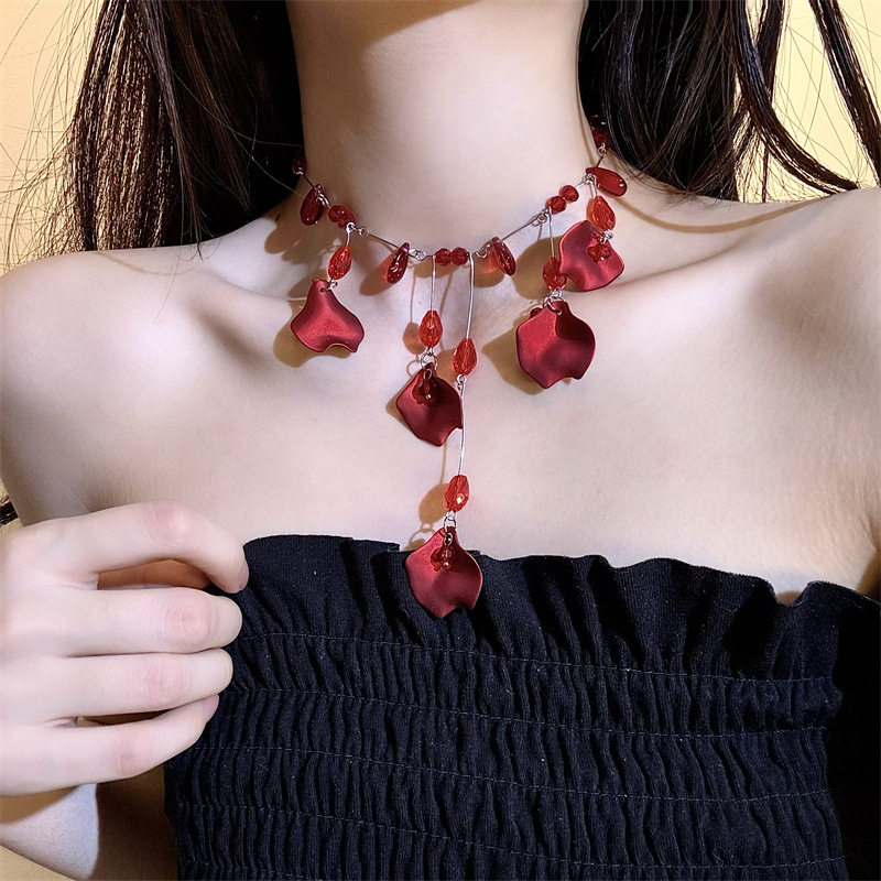 辣妹风红色串珠水滴项链女颈链choker锁骨链配饰饰品