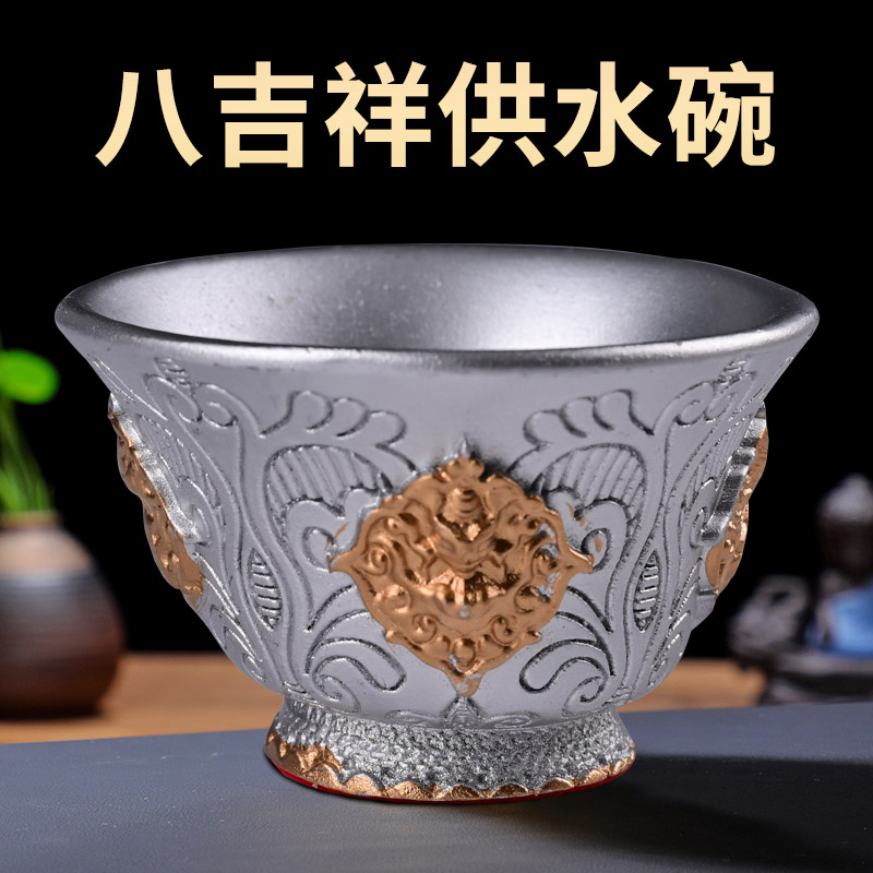 树脂八吉祥供水杯妙宝庄严供佛杯西藏式圣水杯家用莲花供水碗一套