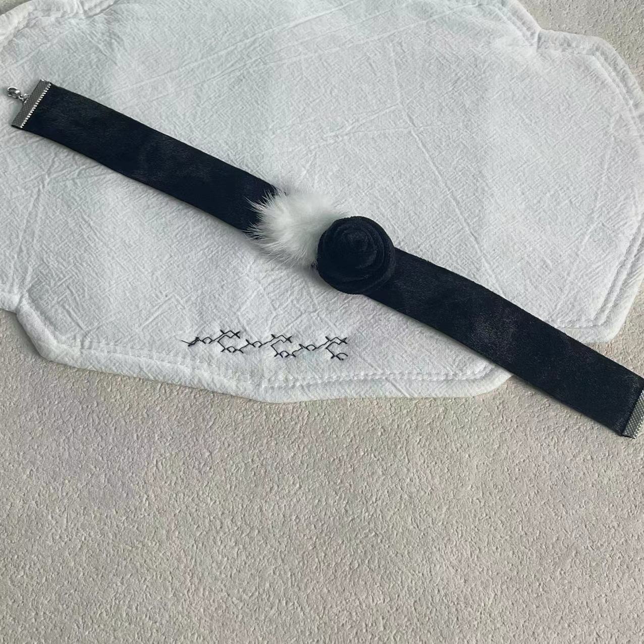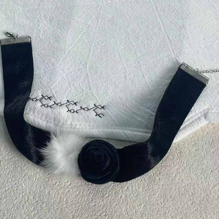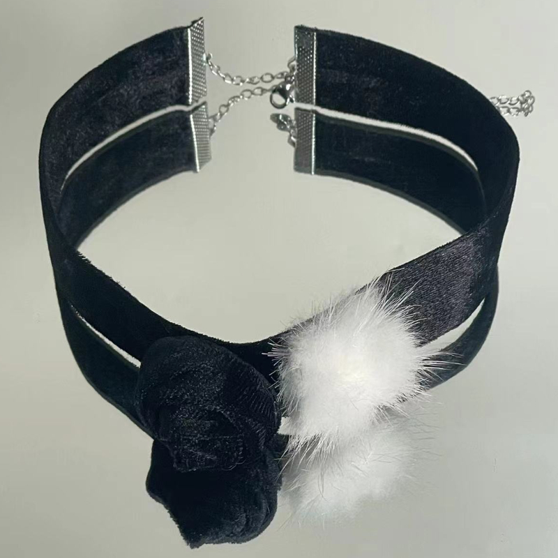 黑色丝绒毛球花朵颈链项链性感简约时尚气质锁骨链小众高级项圈34