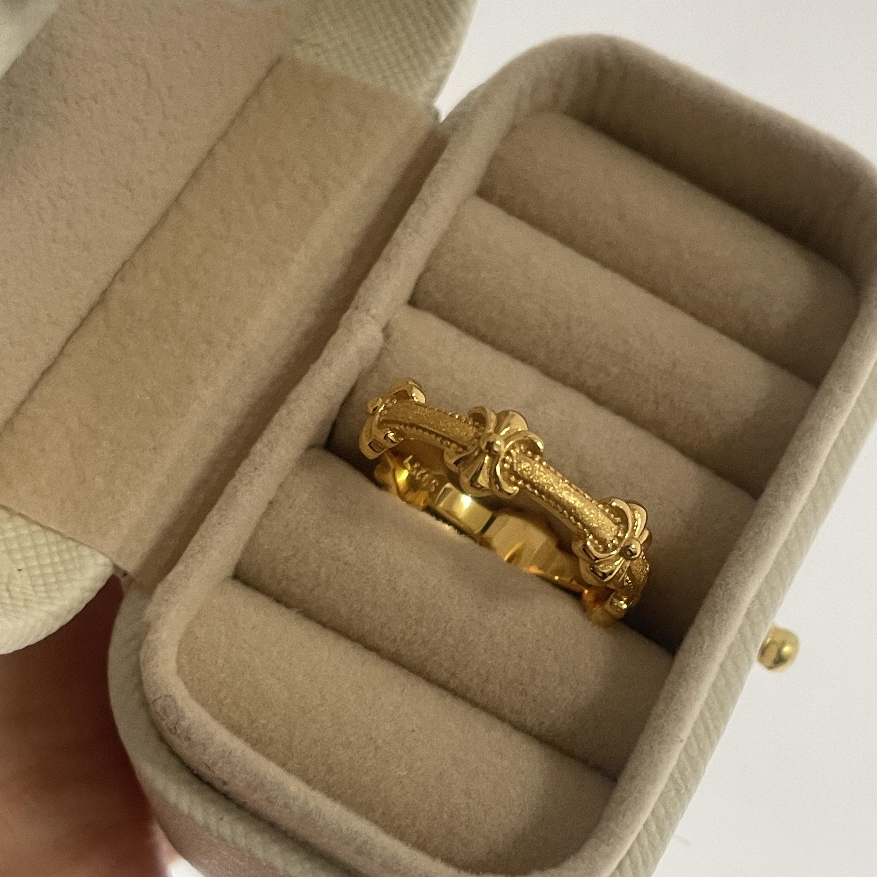 经典元素。S925纯银镀金十字花设计简约戒指环精致高级时髦
