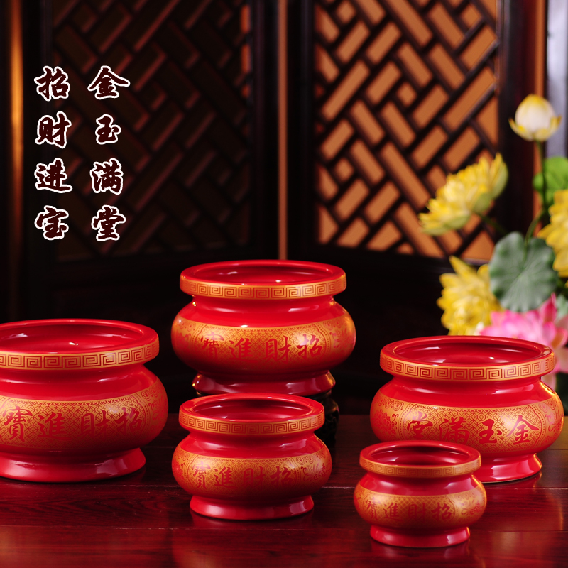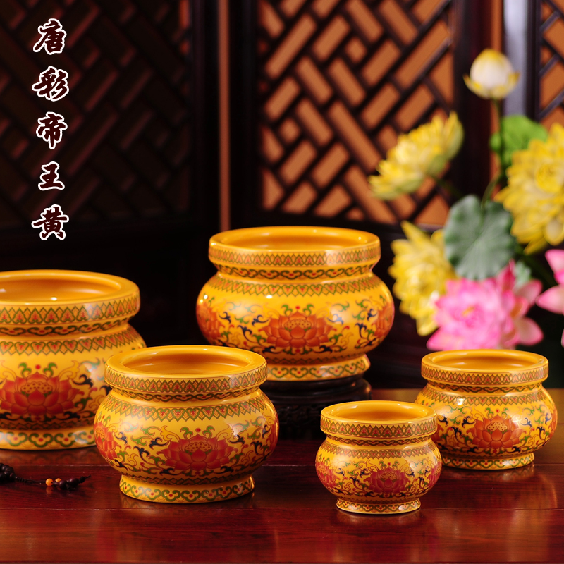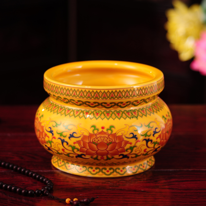 陶瓷招财进宝金玉满堂上香炉佛具用品唐彩财神爷插香烧香家居摆件