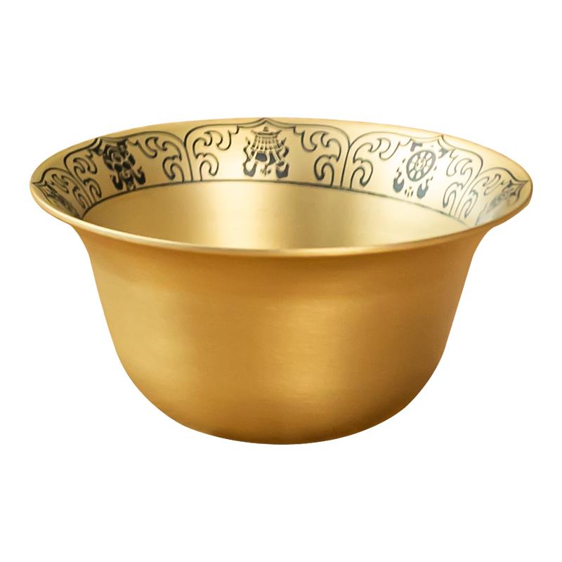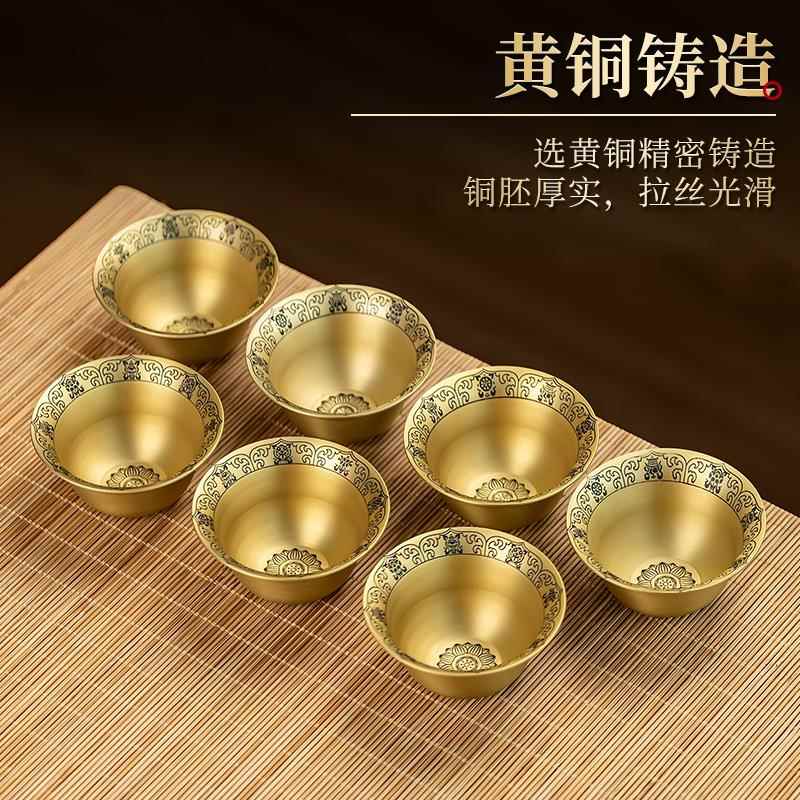 黄铜八吉祥供水杯圣水杯家用财神观音净水杯贡水杯莲花杯供佛摆件