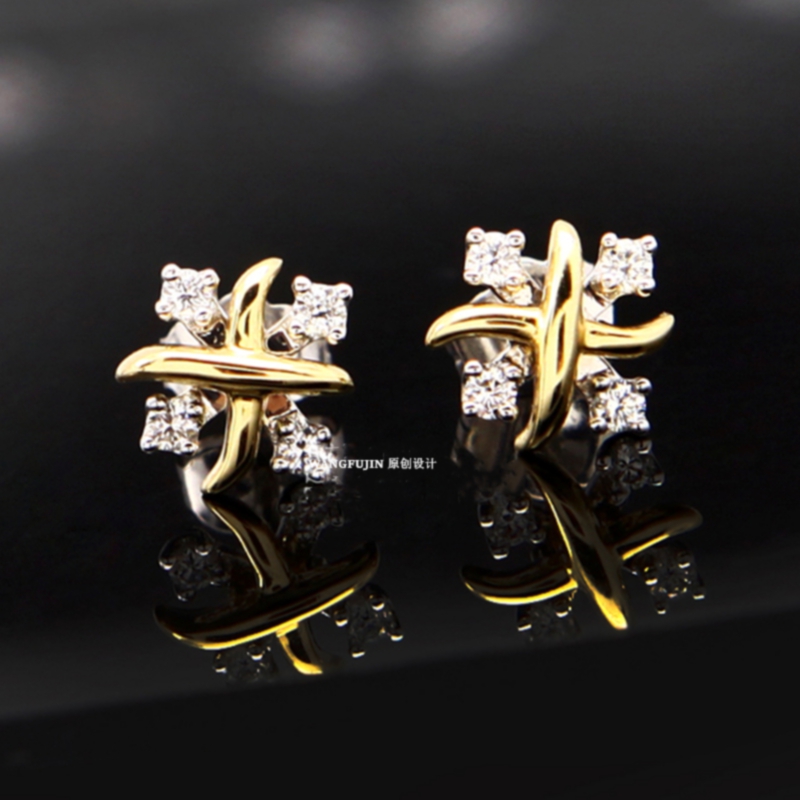 18K金Lγпп交叉耳钉 女黄金字母X钻石耳环纯银十字架个性礼物潮
