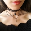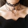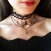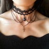 『暗夜弥撒』欧美复古哥特十字架水晶吸血鬼镂空蕾丝项链黑色项链