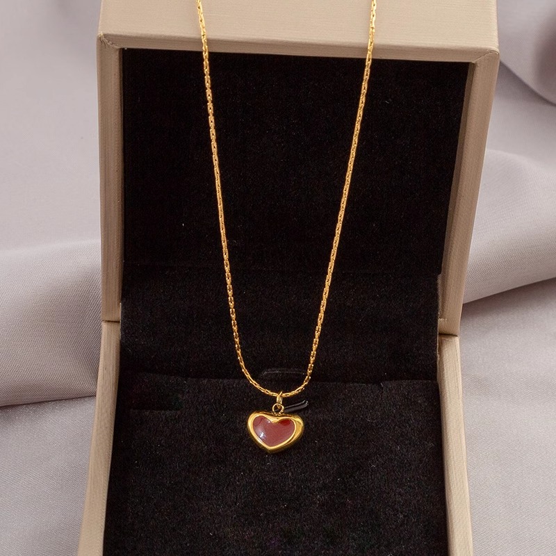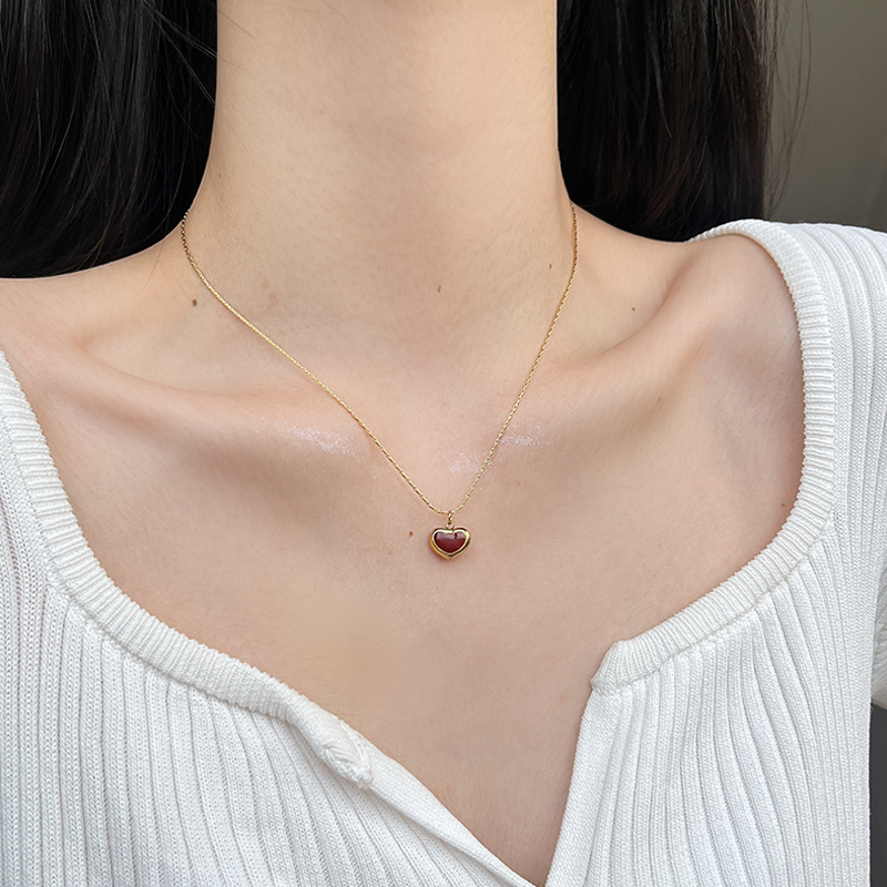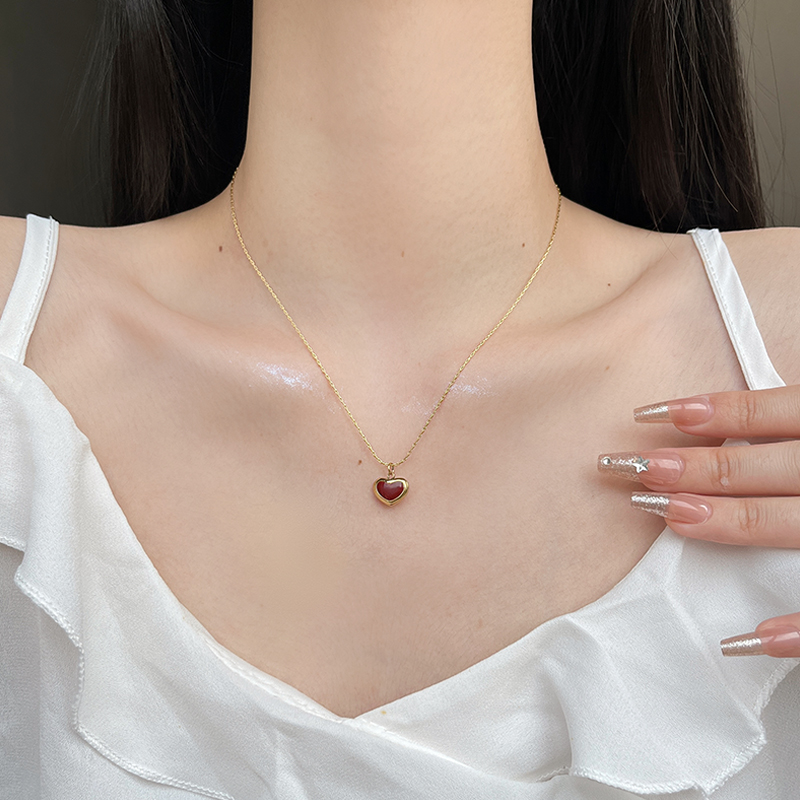 UNBEATEN红色爱心钛钢项链女轻奢小众高级感锁骨颈链配饰2025新款