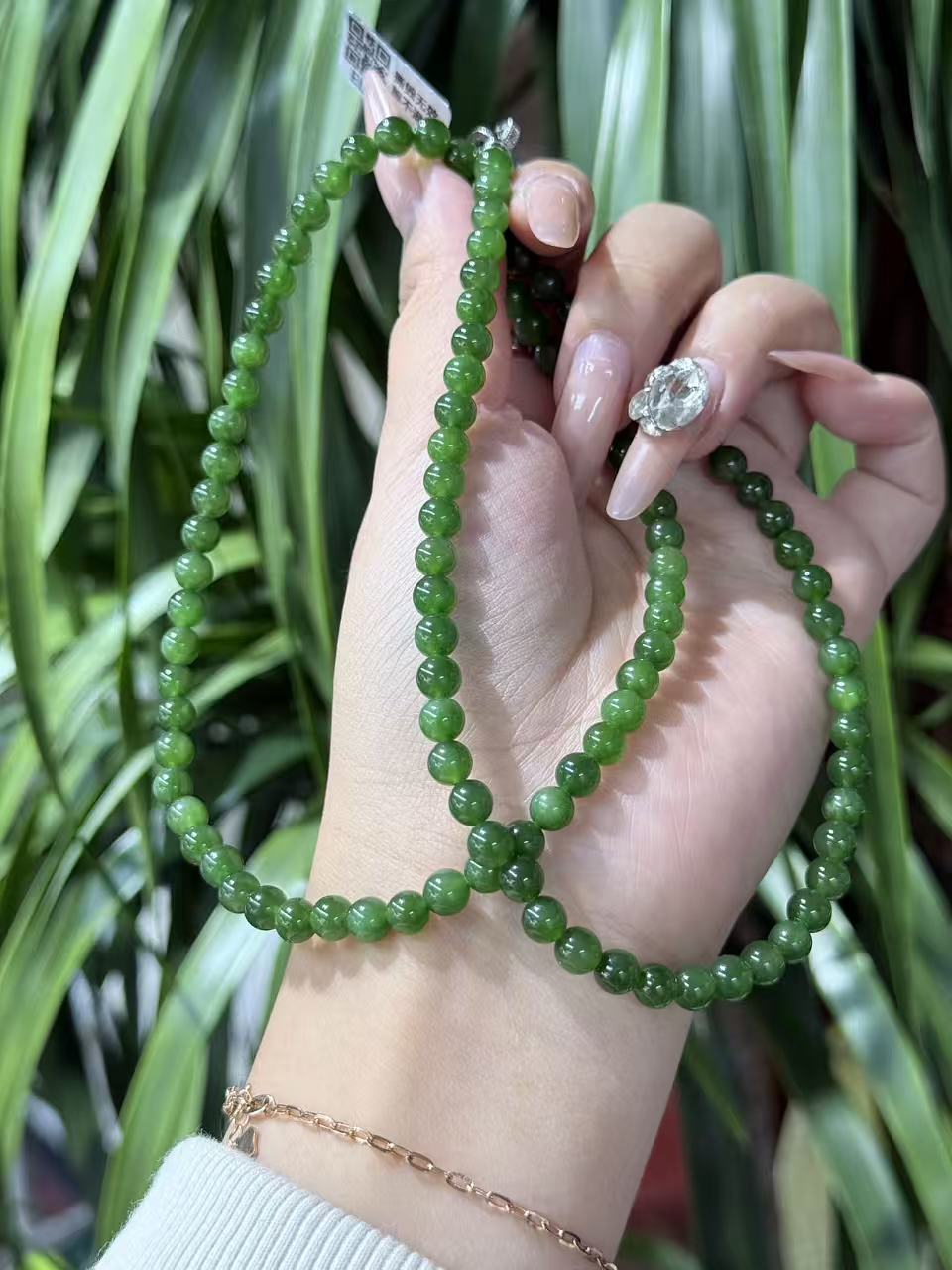 地质大学珠宝天然碧玉手链女款925银镶嵌冰种阳绿手串