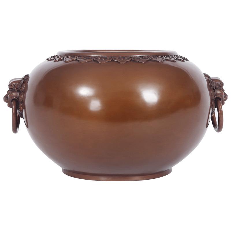 铜缸米缸《如意狮首缸》缸玄关桌面摆件聚宝盆