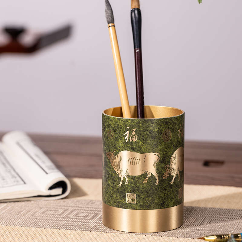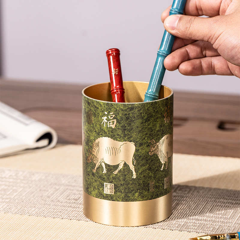 朱炳仁铜 五牛积福笔筒书房文具收藏送人创意清宫艺术学生礼品