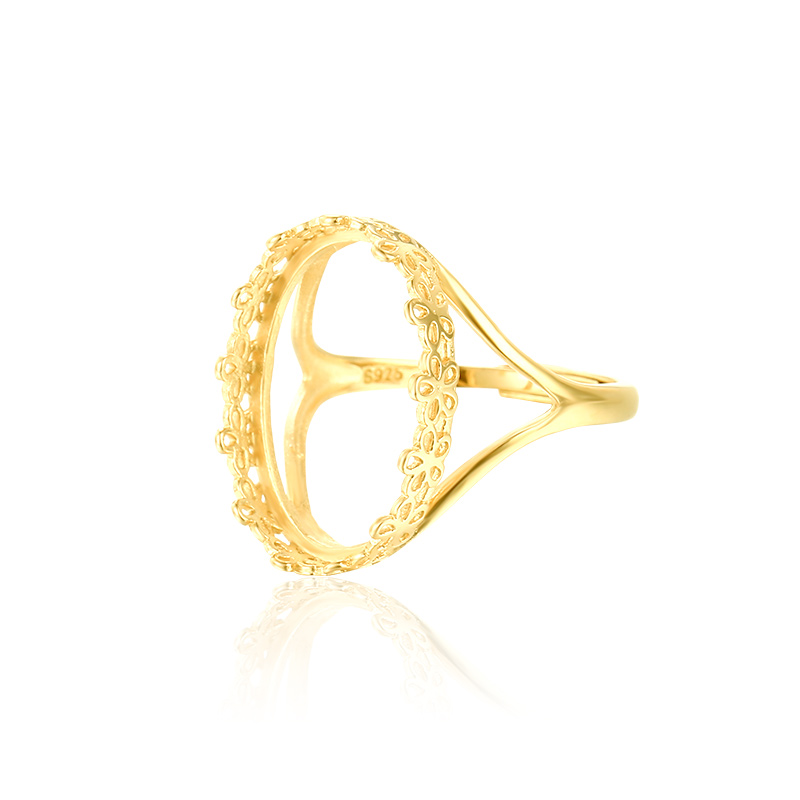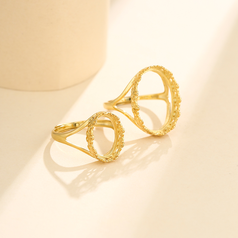 18K黄金戒指空托纯银diy戒托空托翡翠玉石蜜蜡琥珀绿松手镶嵌空托