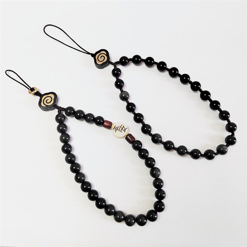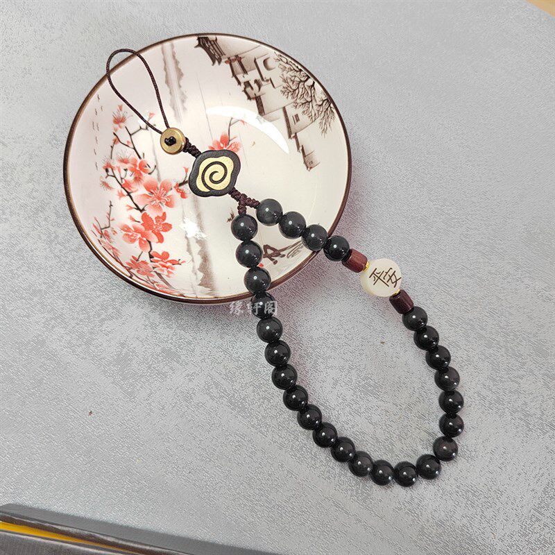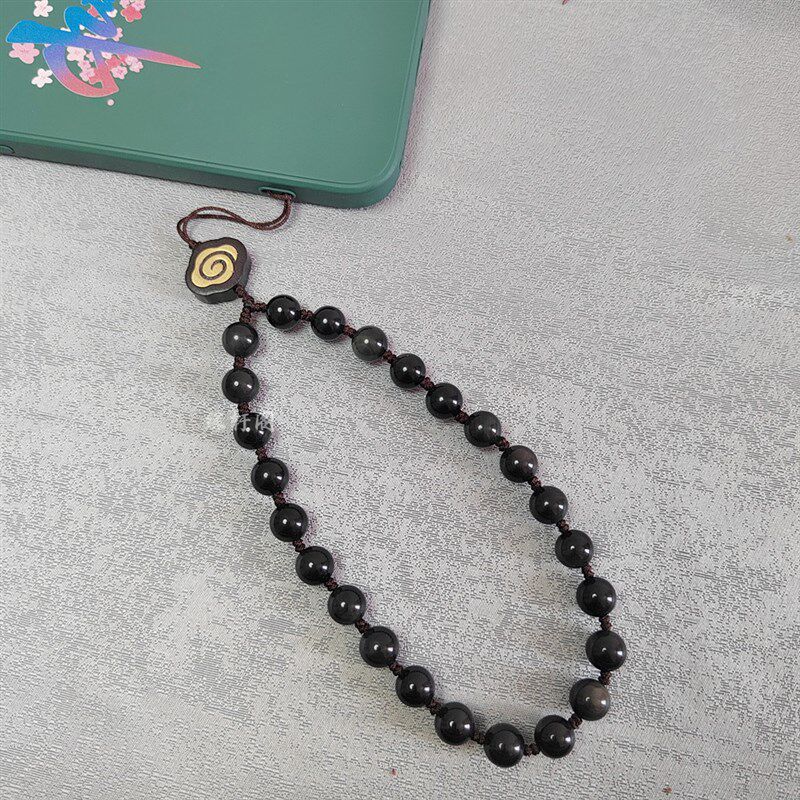 星月菩提手机链挂件 黑曜石手机链吊坠挂绳情Q侣短款男女款送闺蜜