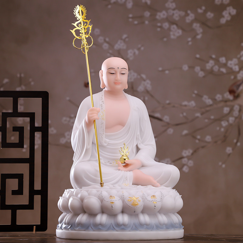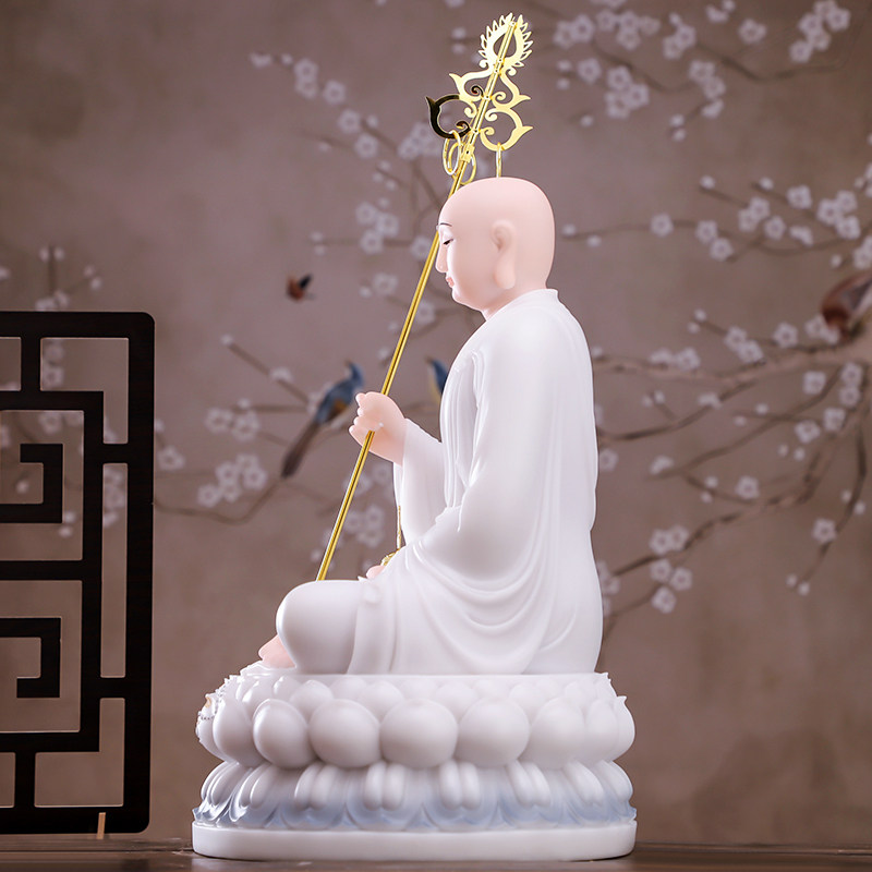 汉白玉地藏王菩佛像供奉九华山地藏菩萨像家用娑婆三圣桌面摆件