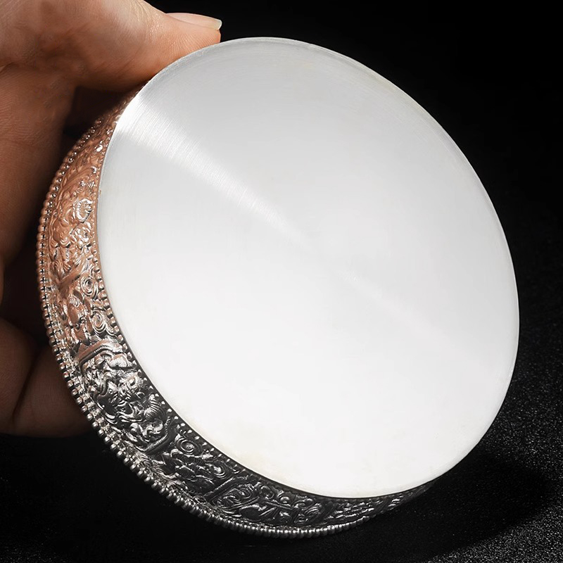 藏式999纯银八吉祥曼扎修盘复古手工精品曼茶罗民族风摆放迷你8cm