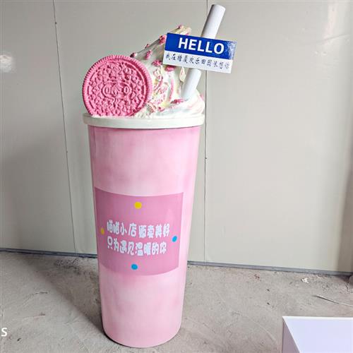 厂家直销大奶茶杯玻璃钢雕塑奶茶店门口创意网红发光开业摆件定制