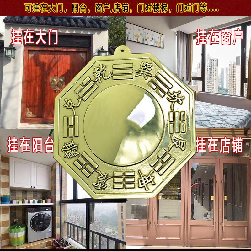全铜八卦镜凸镜纯铜家用门口阳台窗户凹凸镜九宫太极铜镜平镜挂件